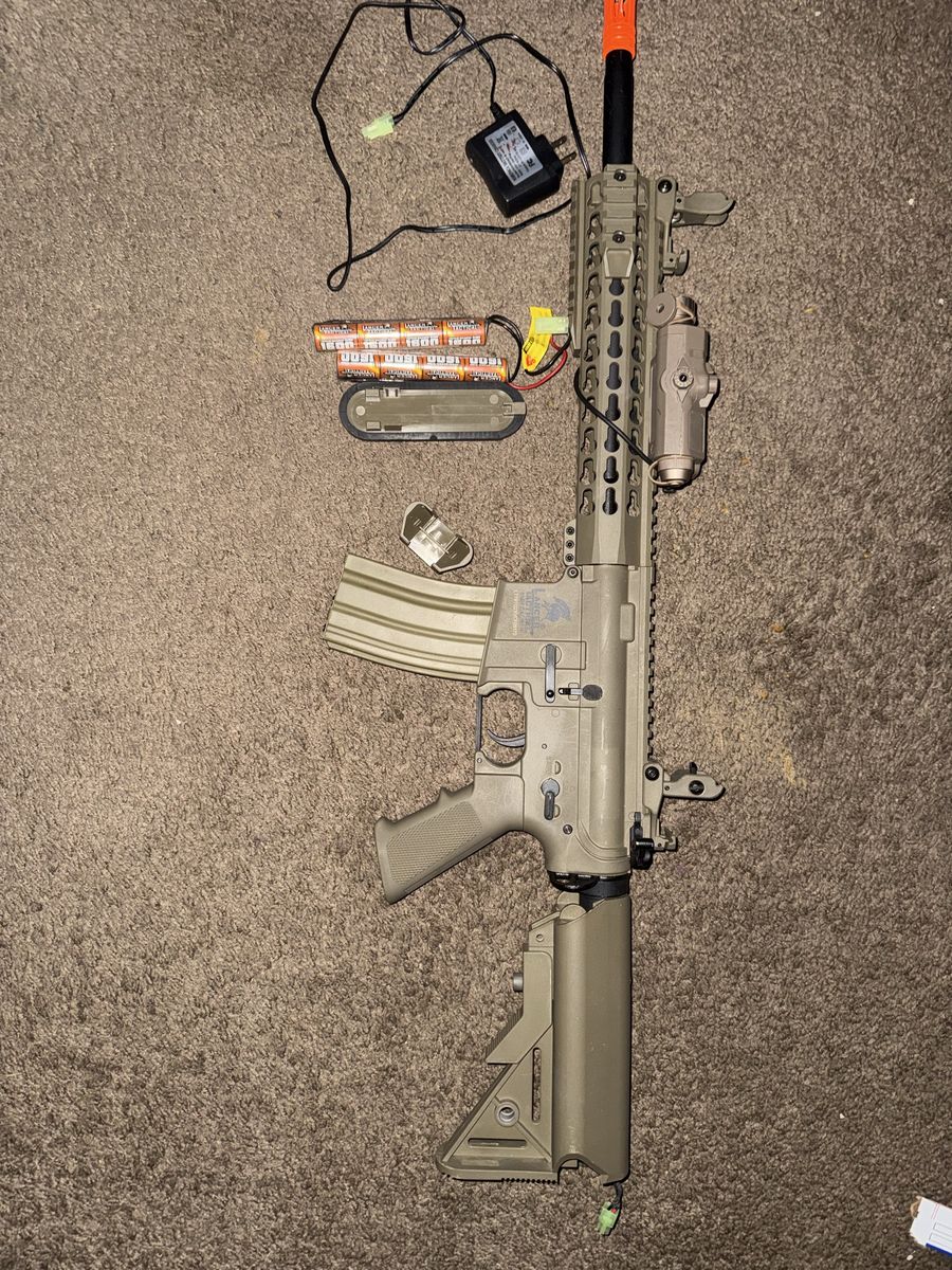 PayPalSelling all for 160$ the gun I got for over a little 200$ the tac light I got for 60$ the air soft oil for 16$ and the rechargeable batteries I couldn’t find the one I got but I’d say it’s 20-25$ that’s 300$ in total this set is perfect for a beginner or for someone that just wants another one. The quality of the gun is very good honestly it surprised me when I opened it. I’ve had it for probably almost two years now but if you have any questions feel free to to ask. Also the sight doesn’t have a better it ran out or else I’d show it works if you have the battery and are interested you can try it if you decide to come have a look. And yes the gun is very powerful and hurts it’ll leave a mark I wanted to feel how powerful and well I felt it