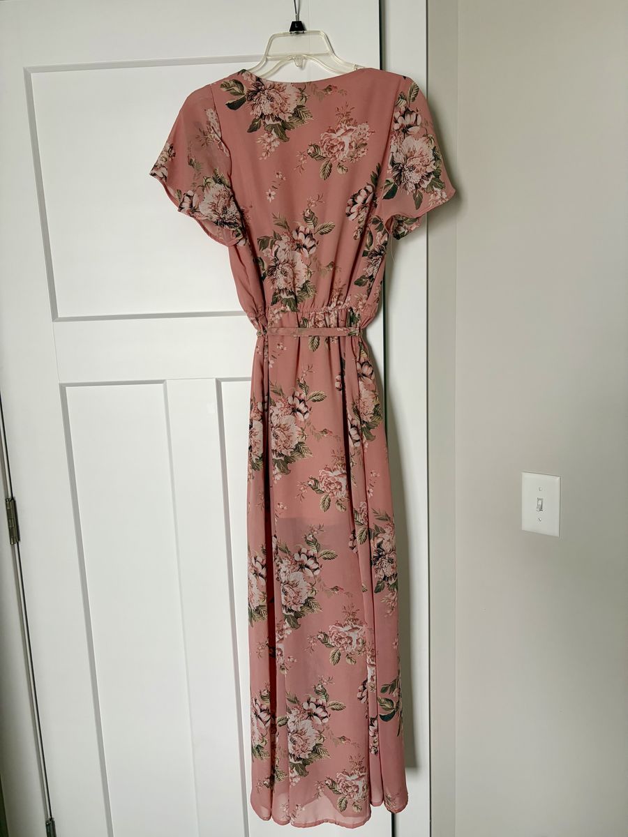 VenmoSelling this beautiful pink, floral maxi dress. Only worn a few times. It has a stretchy elastic waistband and ties around the front. It is very flattering. Size medium. Asking $10.