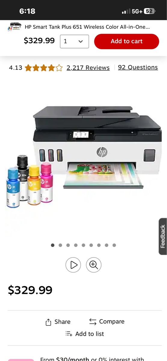 ZelleBrand new hp smart tank plus 651 wireless all in 1 printer. It’s white.