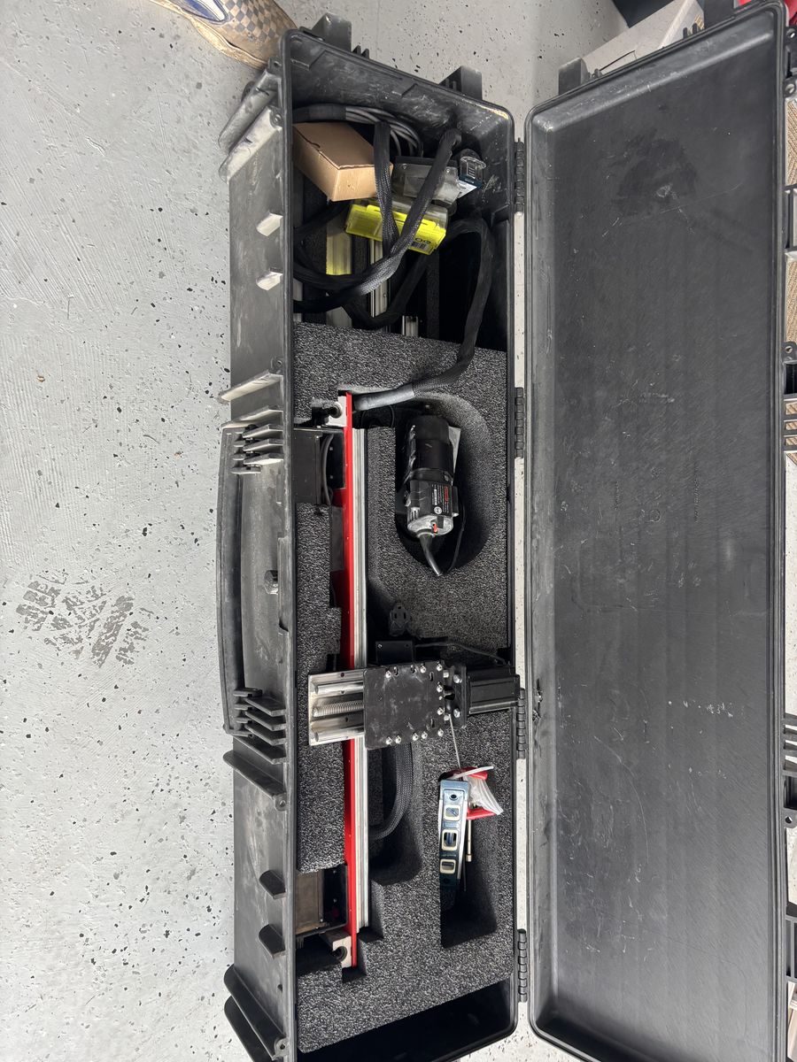 VenmoThis is a Red Art Technologies CNC Pro concrete engraving Machine. I bought it in 2017, only used for a handful of projects. I have retired and closed my business so am selling this. This programmable CNC machine allows you to quickly and efficiently create graphics, custom signage and logos, text, decorate art work, address markers and so much more. This is portable so you can conveniently take it from location to location. You can do this on horizontal or vertical surfaces. Ability to engrave on concrete, wood, stone, tile, brick, high density polyethylene (HDPE) or glass. This comes with laptop loaded with the Vectric VCarve Pro software, and the frame is a milled aluminum design. It comes in a waterproof high density plastic case, secured in customized foam lining. Dimensions are 56x17x14 inches. Weight 110 lbs.