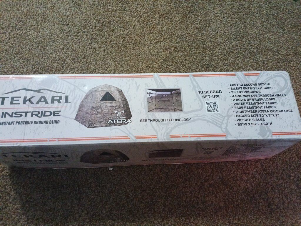 Tekari Instride portable ground blind. see through. brand new, bought for 150. I ordered two, one for me and my son but my son got one already. my loss your gain. selling for 110 obo