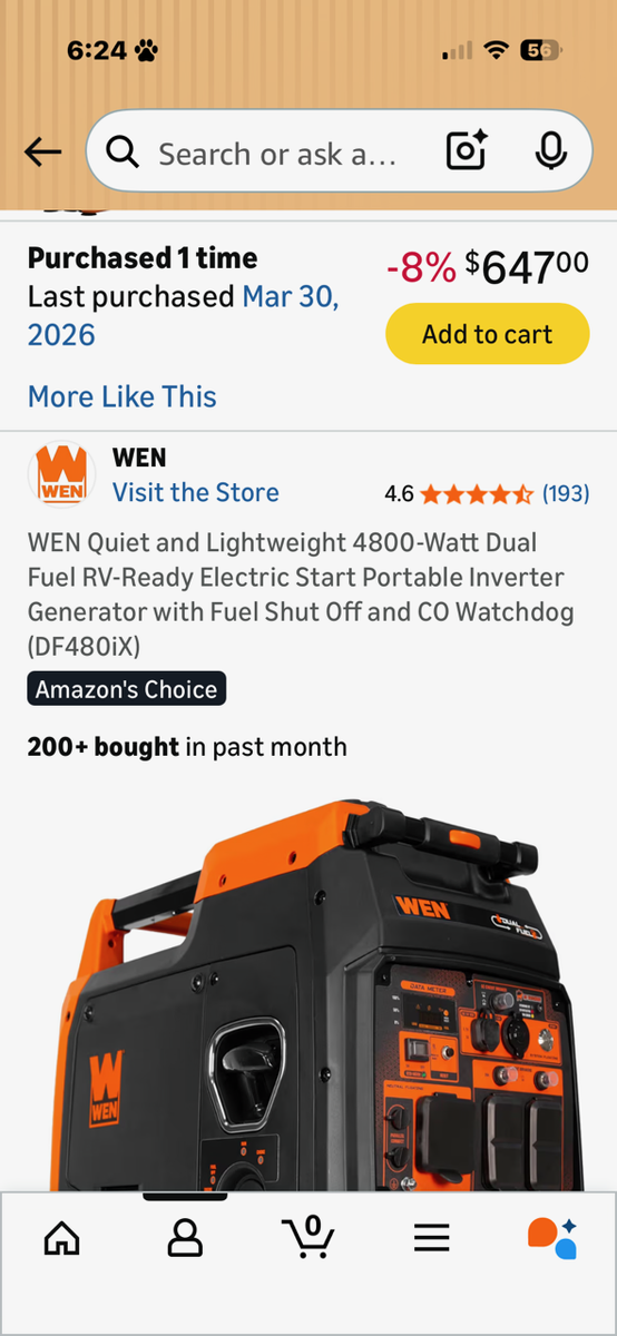 VenmoBRAND NEW WEN 4800w Dual Fuel inverter generator. I just took this out of the box on 4/2 and realized I ordered the wrong generator. This is non-returnable from Amazon so my loss is your gain. Paid $694 after taxes. Asking $550
