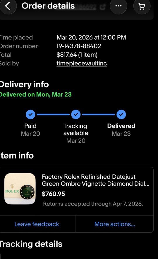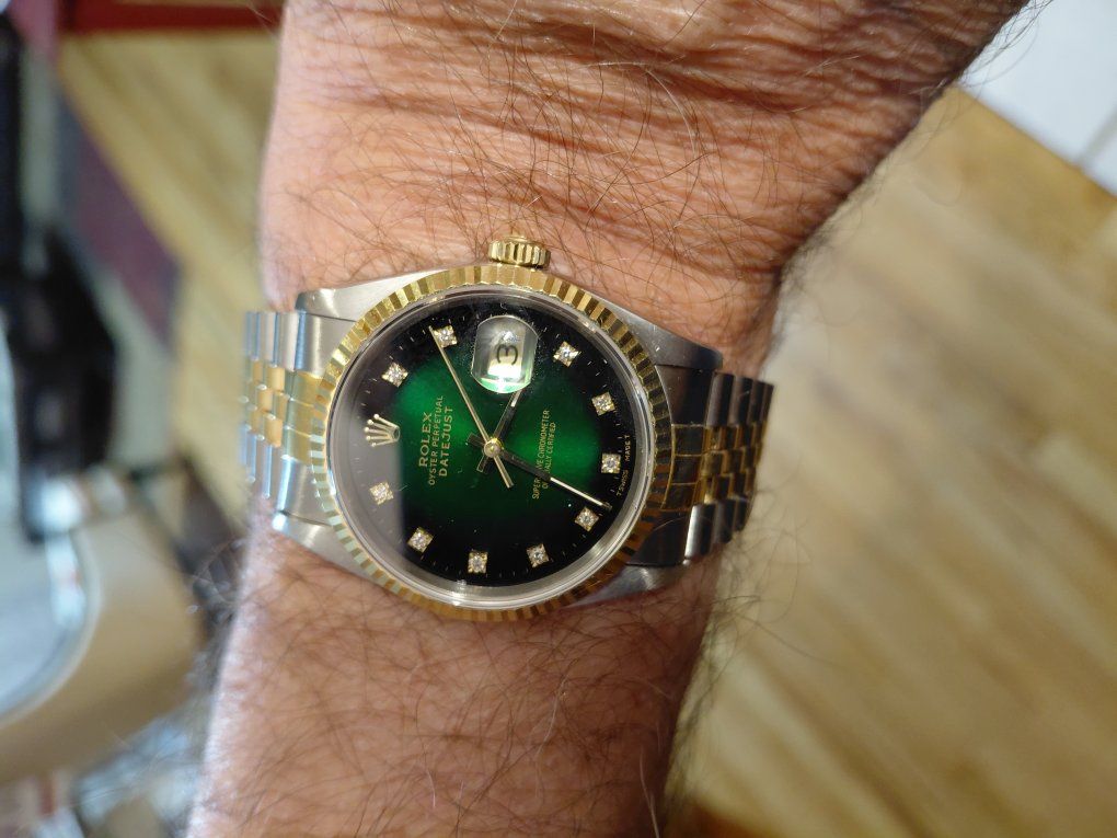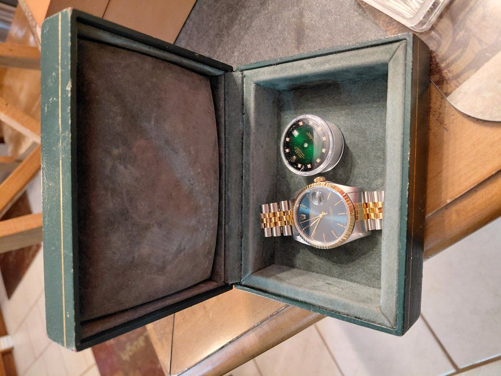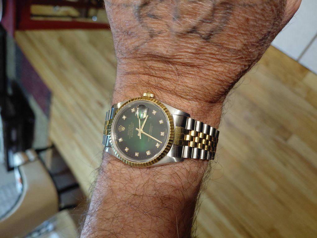 PayPalThis is a beautiful authentic rolex factory diamond dial for a Datejust 36mm. Was on a Datejust 16233. This is not the replica, 'custom' dials you see on ebay for $300-$450 but this is the real deal that has been professionally refinished to an amazing emerald green ombre vignette. This was purchased recently for over $800 after tax. Will take $650 obo. May consider trades for a nice smith and wesson snubby or 1911? Maybe even another watch