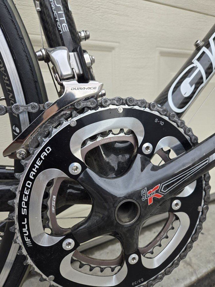 SPECS: GIANT TCR CARBON Size XS extra small 2x10 speed Dura Ace Shifters Dura Ace derailleurs Dura Ace brakes Ultegra Cassette FSA Carbon Crankset Carbon seat post Carbon stem Titanium saddle Bontrager Race lite wheelset S works Tires