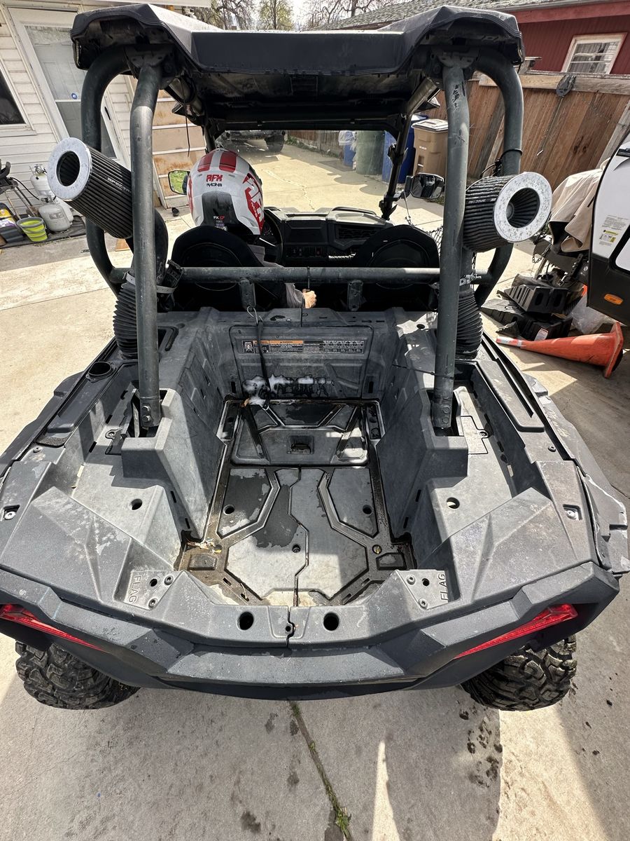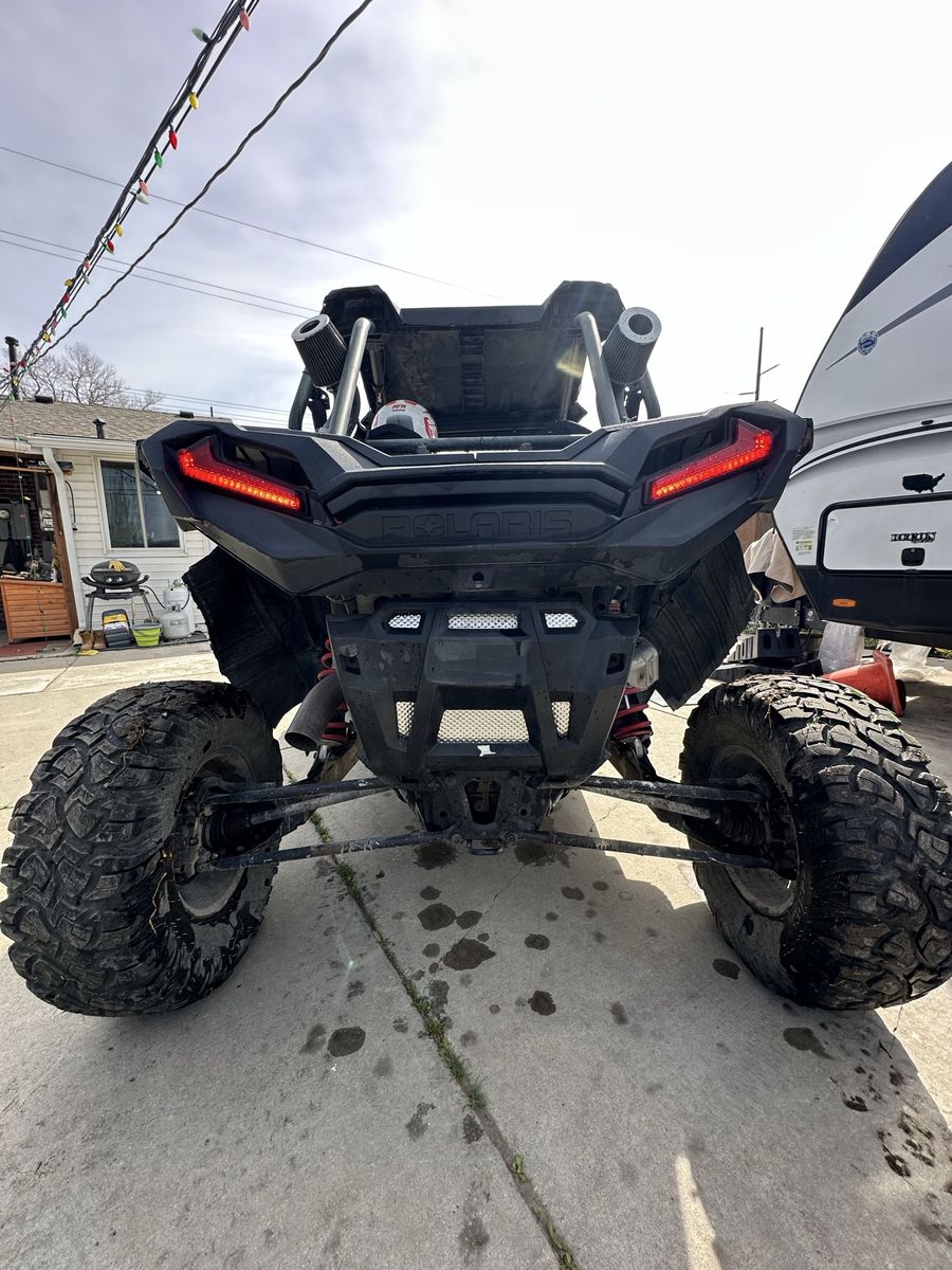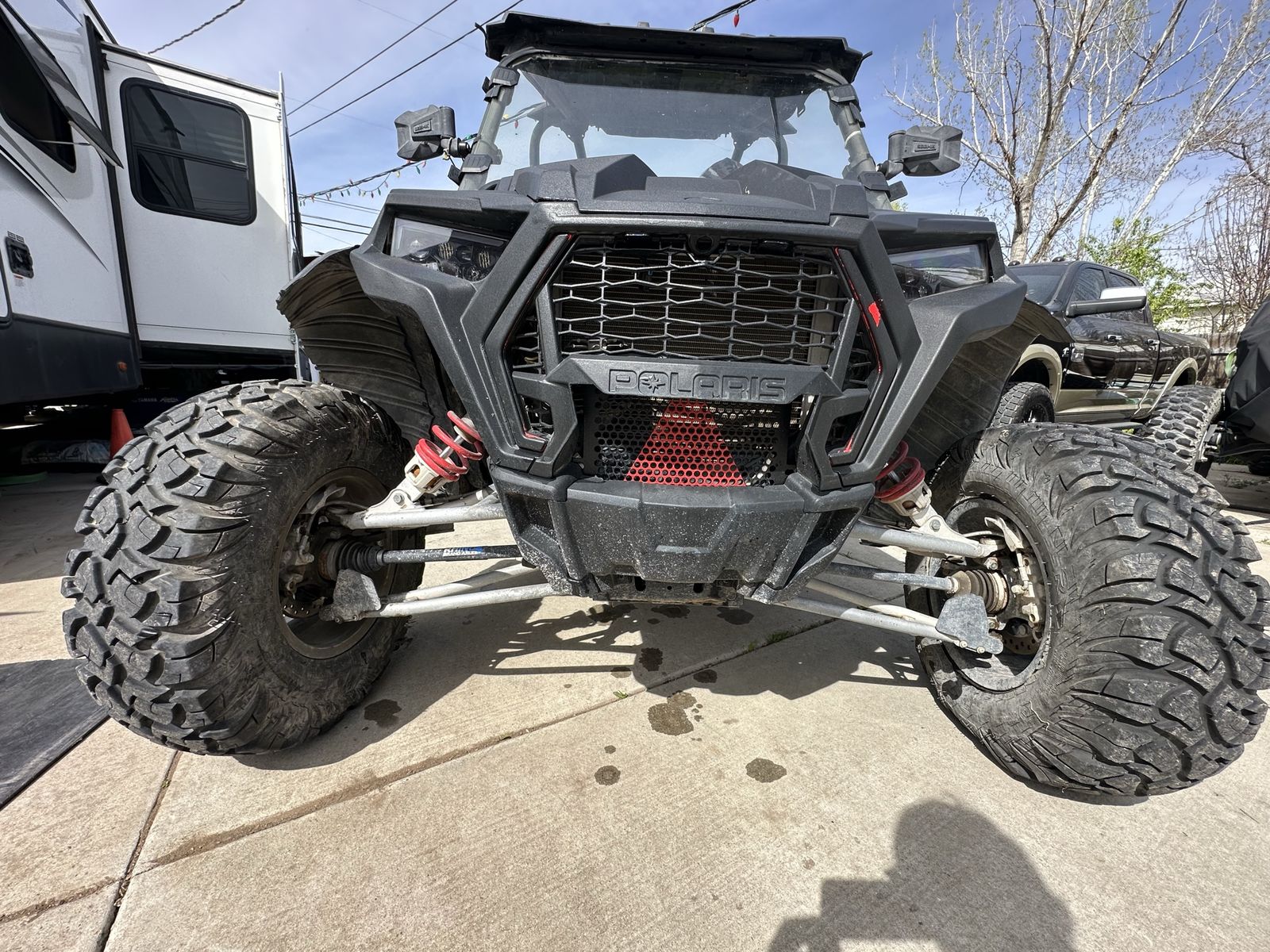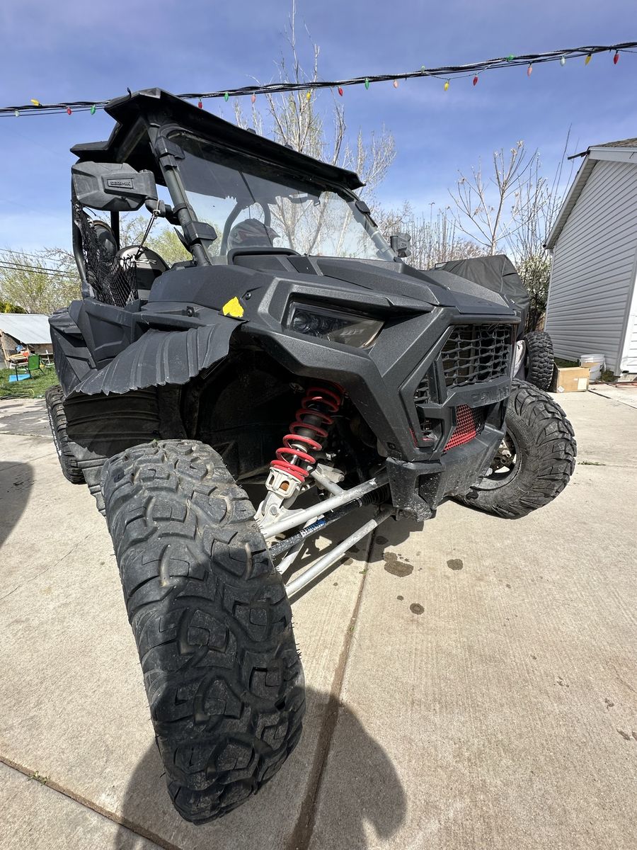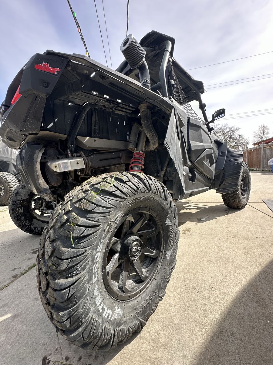 The 2019 Polaris RZR XP 1000 EPS is a 64-inch wide sport side-by-side powered by a 110-horsepower 999cc ProStar engine, featuring electronic power steering (EPS) and 20+ inches of usable suspension travel. Known for its durability and popularity in sport UTV riding, it includes Walker Evans needle shocks, dual air intakes, steering wheel nut was removed, but was not put back on driver front CV axle needs to be replaced, purchasing this side-by-side, you will receive a free axle to replace it as well as two unused belts, two mounted mirrors, windshield, passenger and driver door nets, roof has a spiderweb spray paint decal —- ITP 29x9.00R14 NHS 8 ply rated ULTRA CROSS R - front tires —- ITP 29x11.00R14 NHS 8 ply rated - rear tires — newly used, for QB quad boss off-road rims with locking lug nuts, and 15 inches of ground clearance.