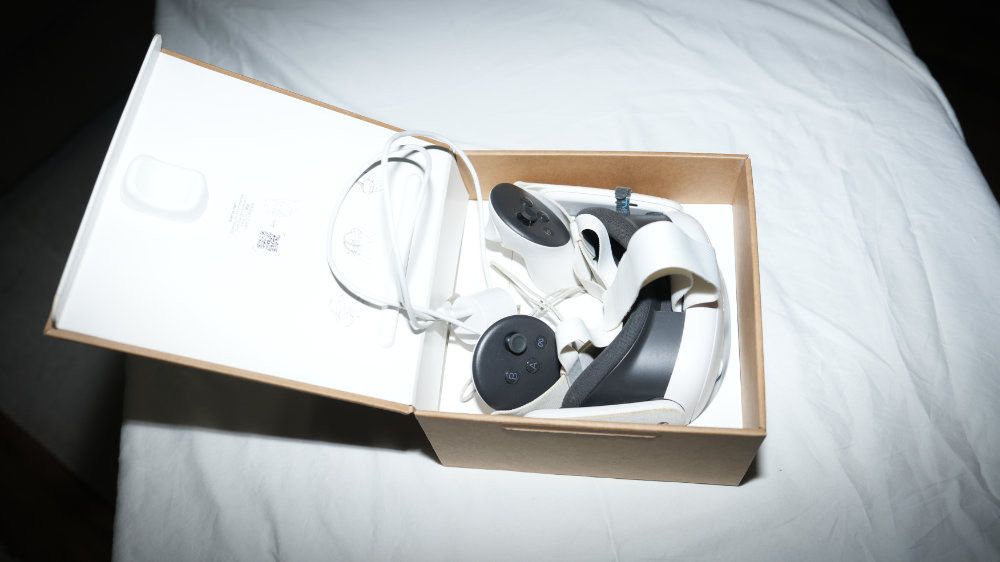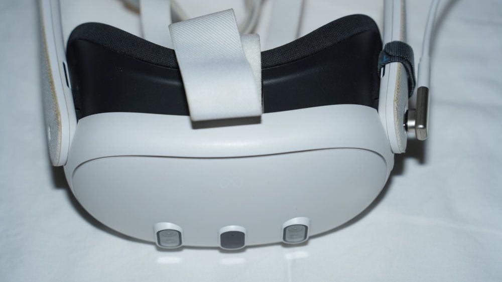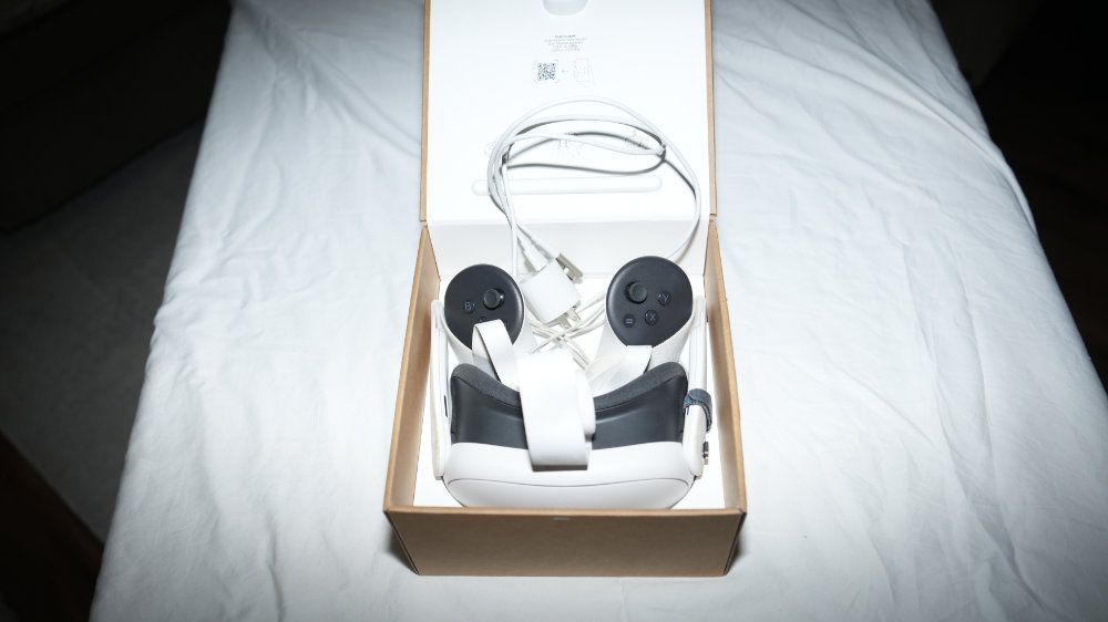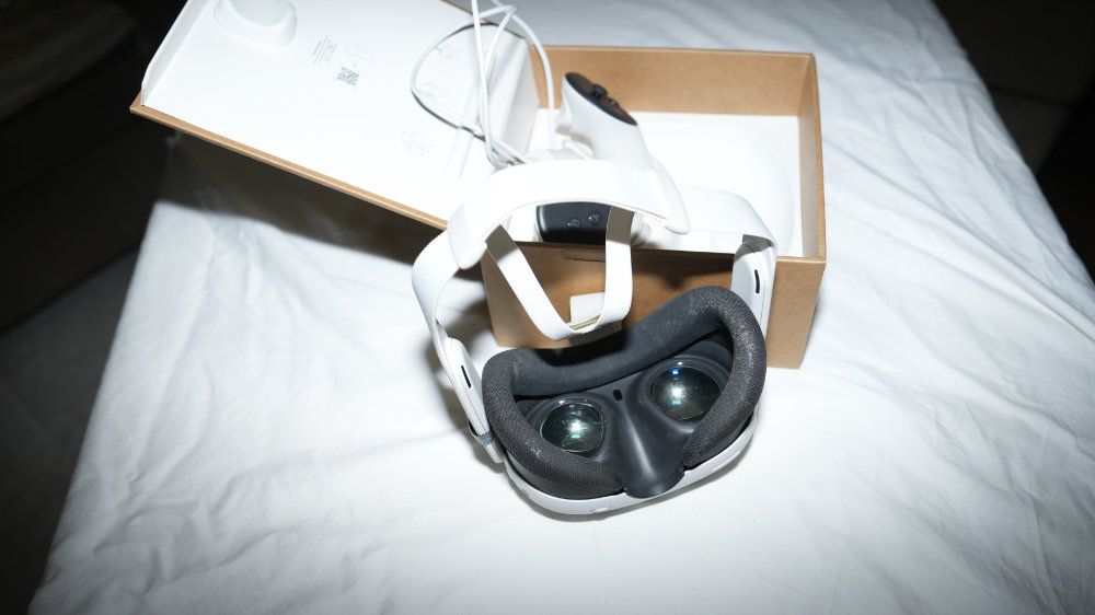 The Meta Quest headset is lightly used but in perfect condition. I added a right angle magnetic USB plug so if the cord gets pulled on it doesn’t damage the headset and just unplugs from the headset. This also allows me to plug it into a standard USB battery pack I keep in my pocket and run the Meta Quest for as long as I want. Obviously the bigger the battery the longer it lasts.