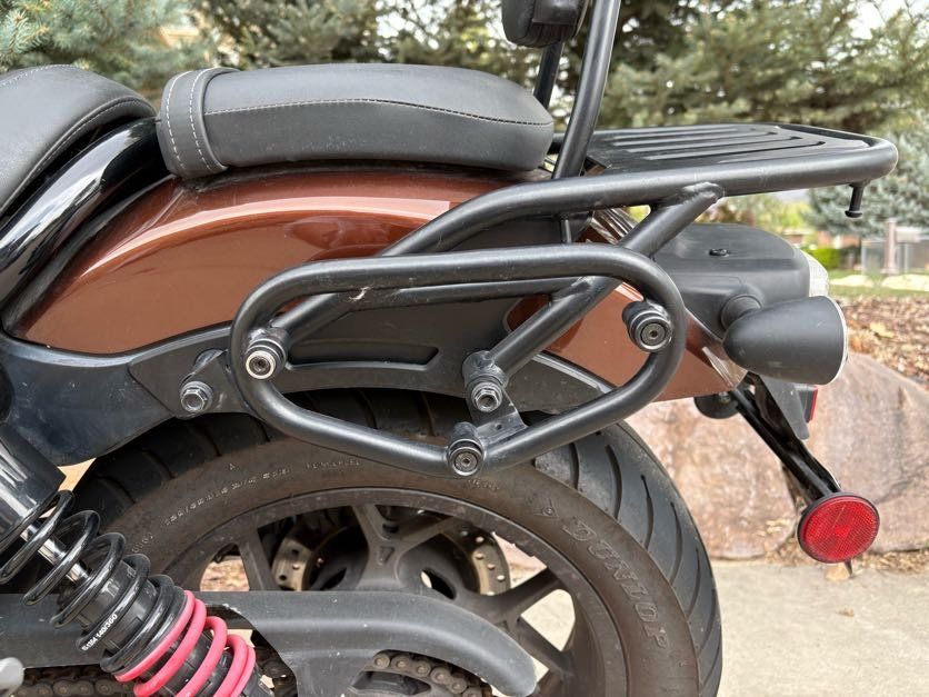 Not pictured: I have luggage for it - OEM left side bag and custom Mystery Ranch 3 way zip briefcase that pops on the right side. I also have a full windshield for it that pops on the fork brackets. The seat has some minor cracks from the sun last year, but I have the original seat still in pristine condition. I also have some new sissy bars that I never got around to installing. That's over $1,500 in extras!