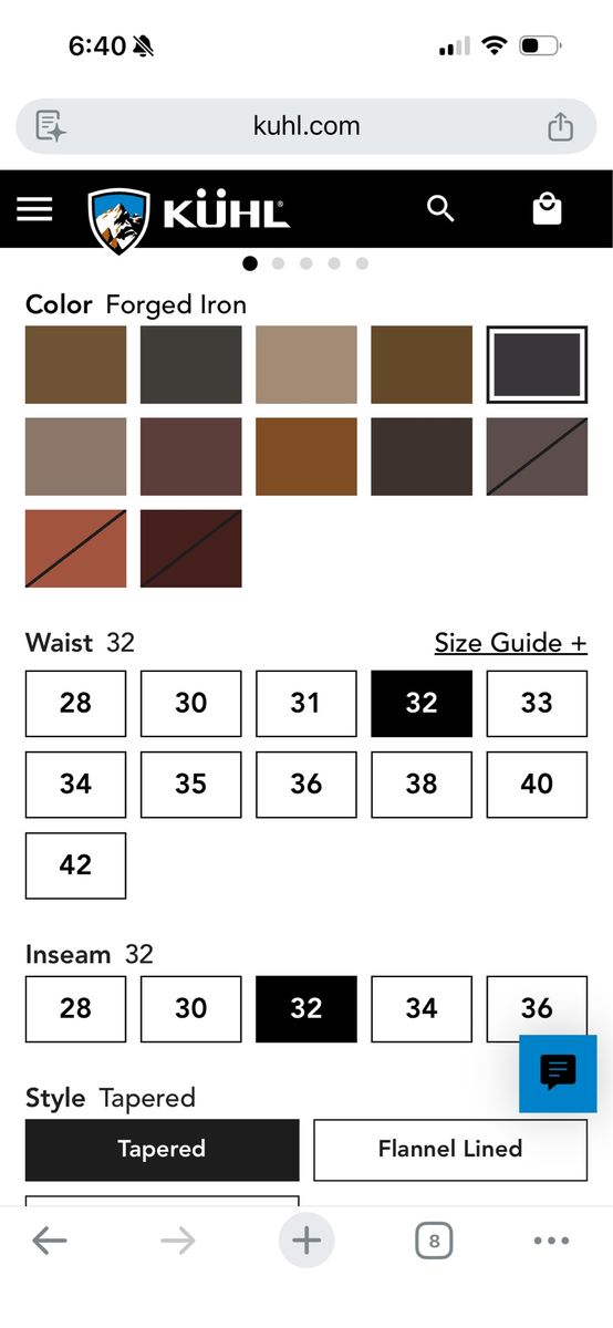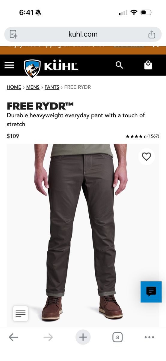 Kuhl Free Ryder Pants Size 32x32 Color Forged Iron Style Tapered MSRP $109