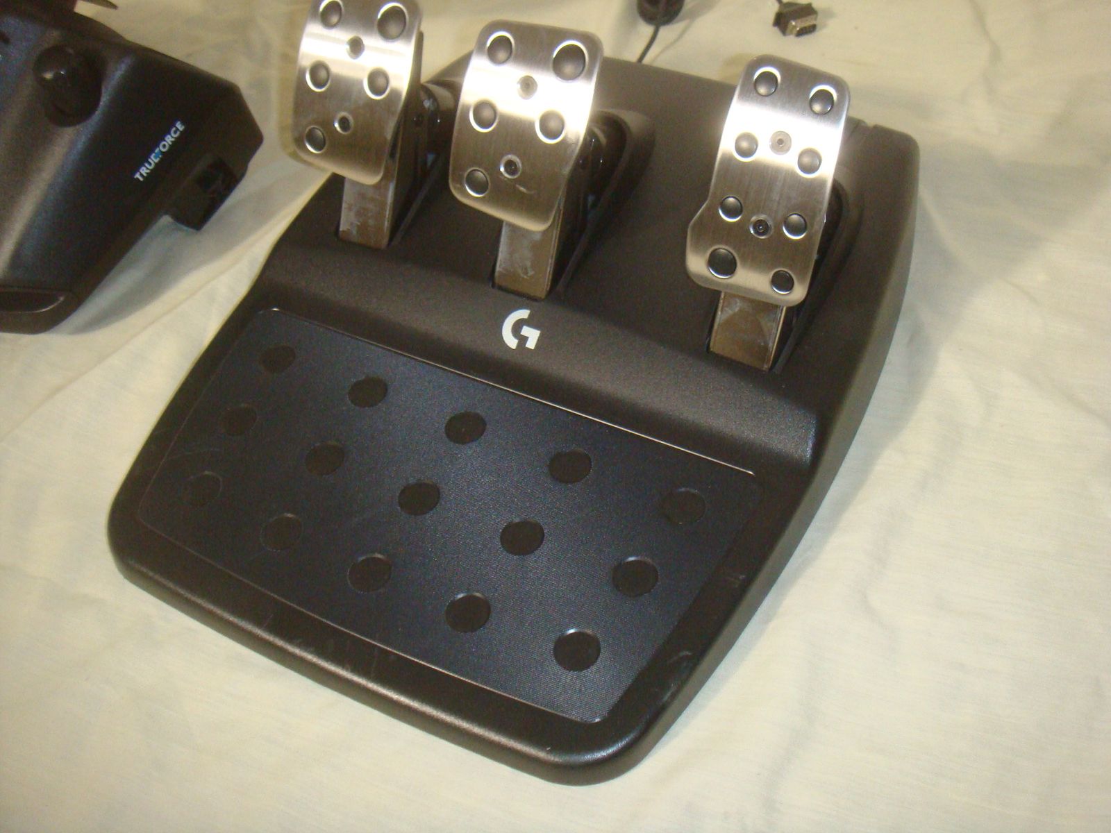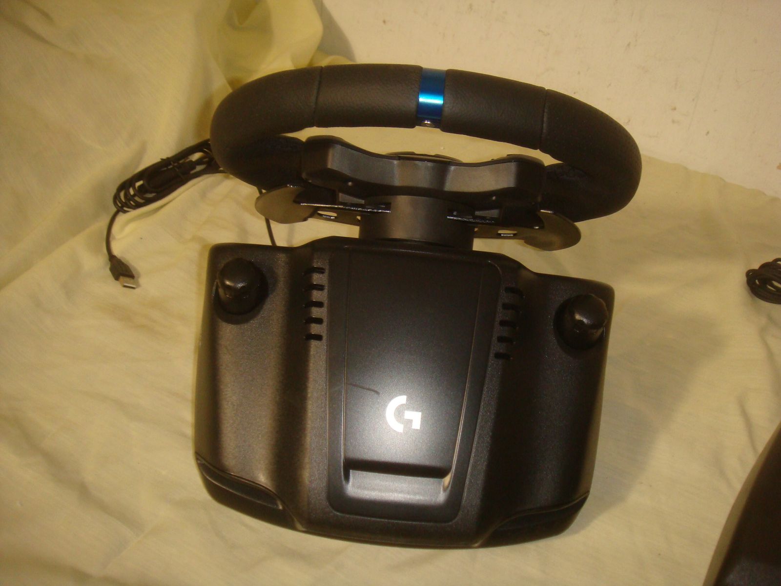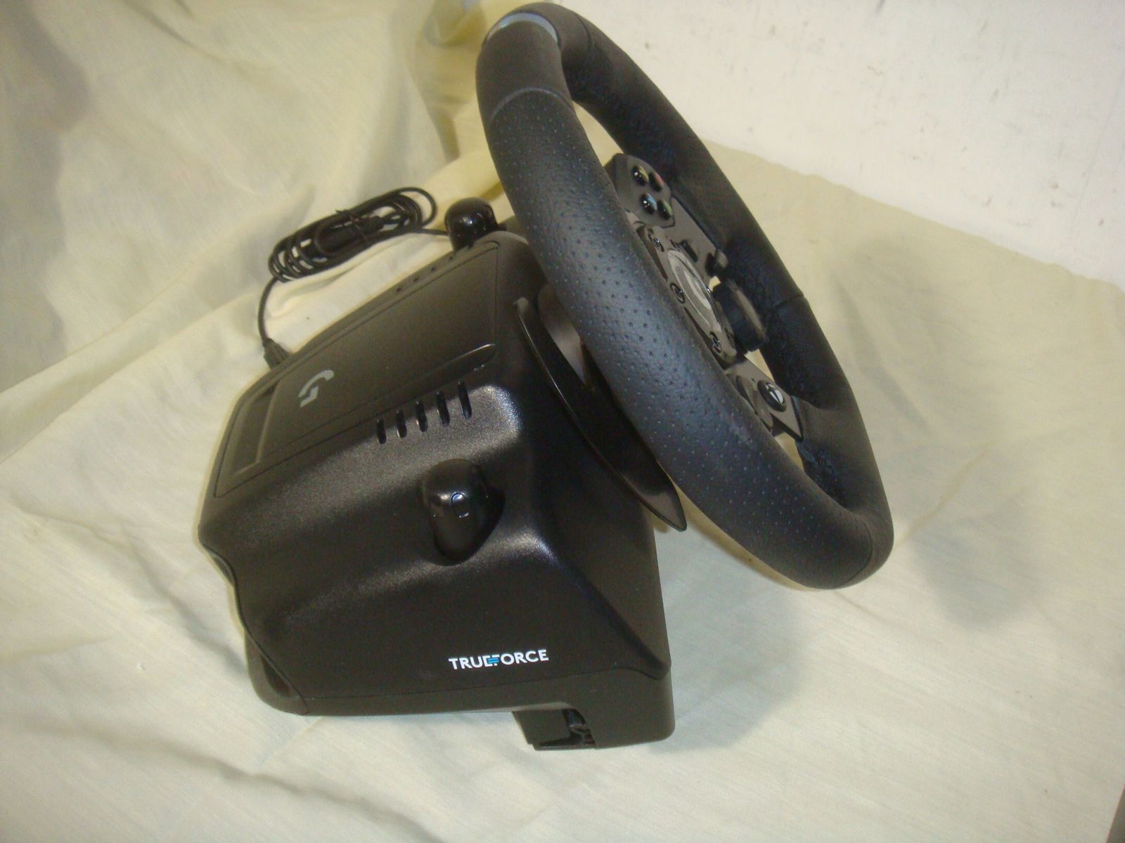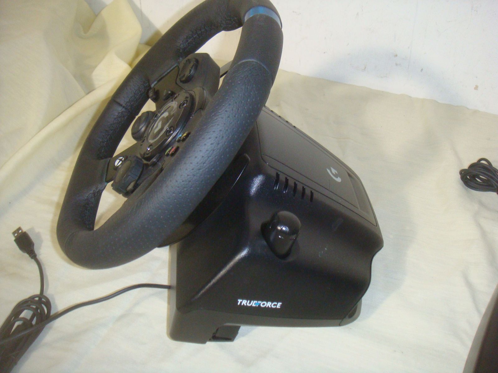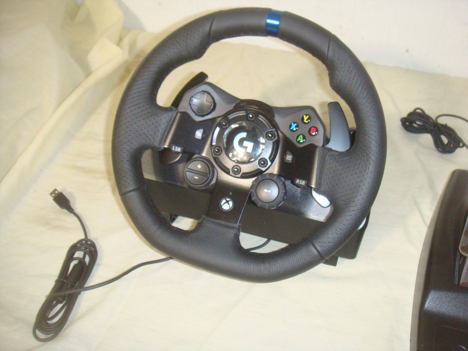 LOGITECH G923 RACING WHEEL AND PEDALS FOR XBOX ONE AND PC. This is in practically new condition. It has a couple of very minor surface marks on the front of the wheel, but otherwise is excellent! It comes with everything shown. This is your chance to save big-time so don't miss out!