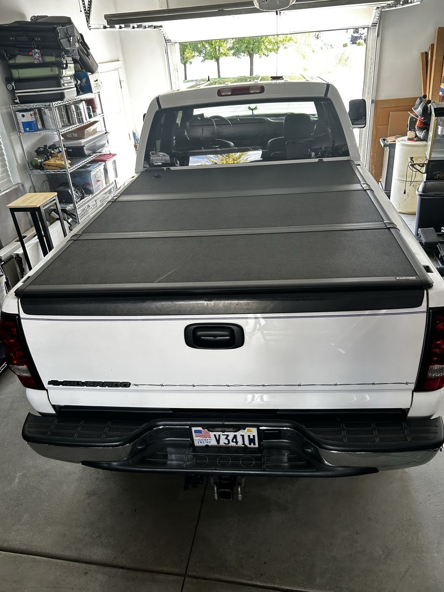 Extang Tonno truck bed cover, super nice for keeping things in your bed dry and safe.fits 2001 to 2007 Chevy or GMC. We’ll also fit other short bed trucks. Here are the measurements. 63 1/25 by 79 inches asking $300 or best offer . 801-540-4414.