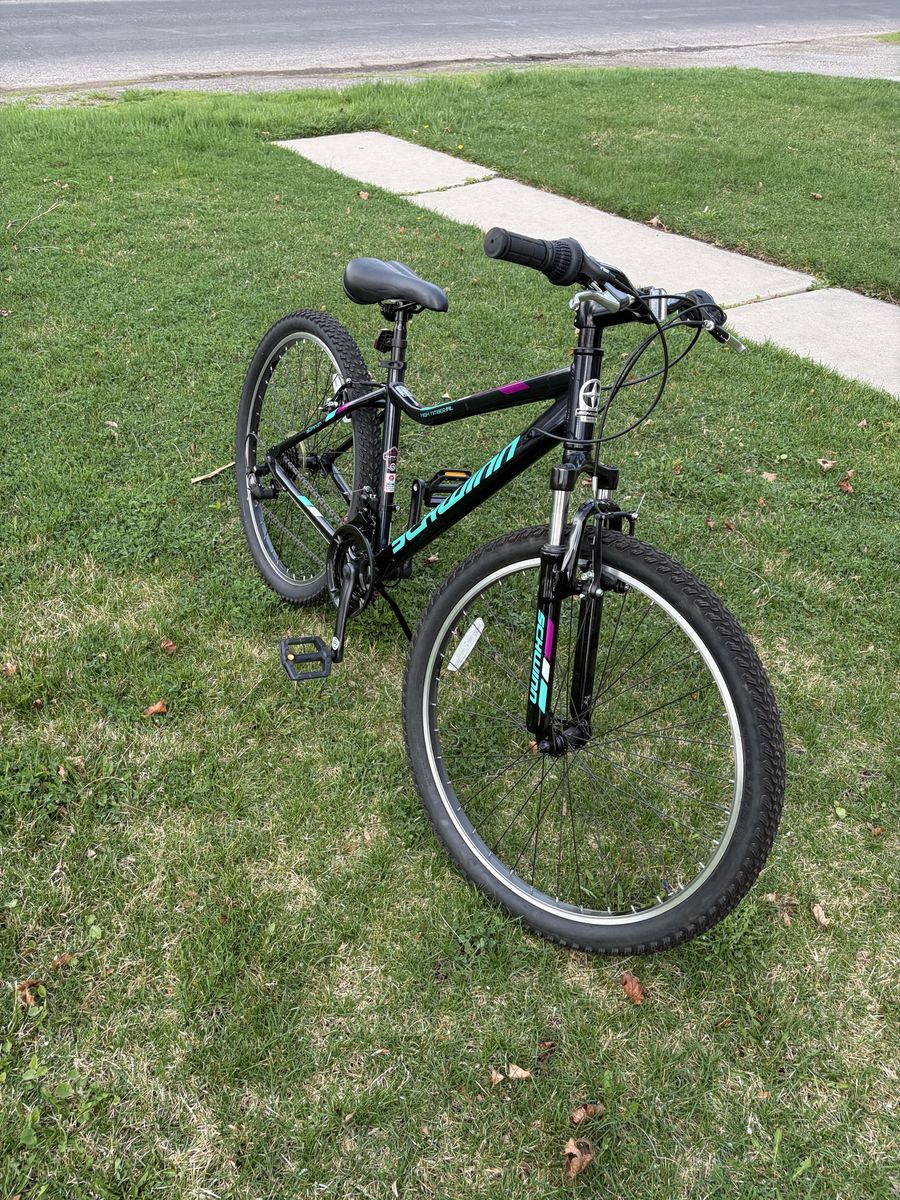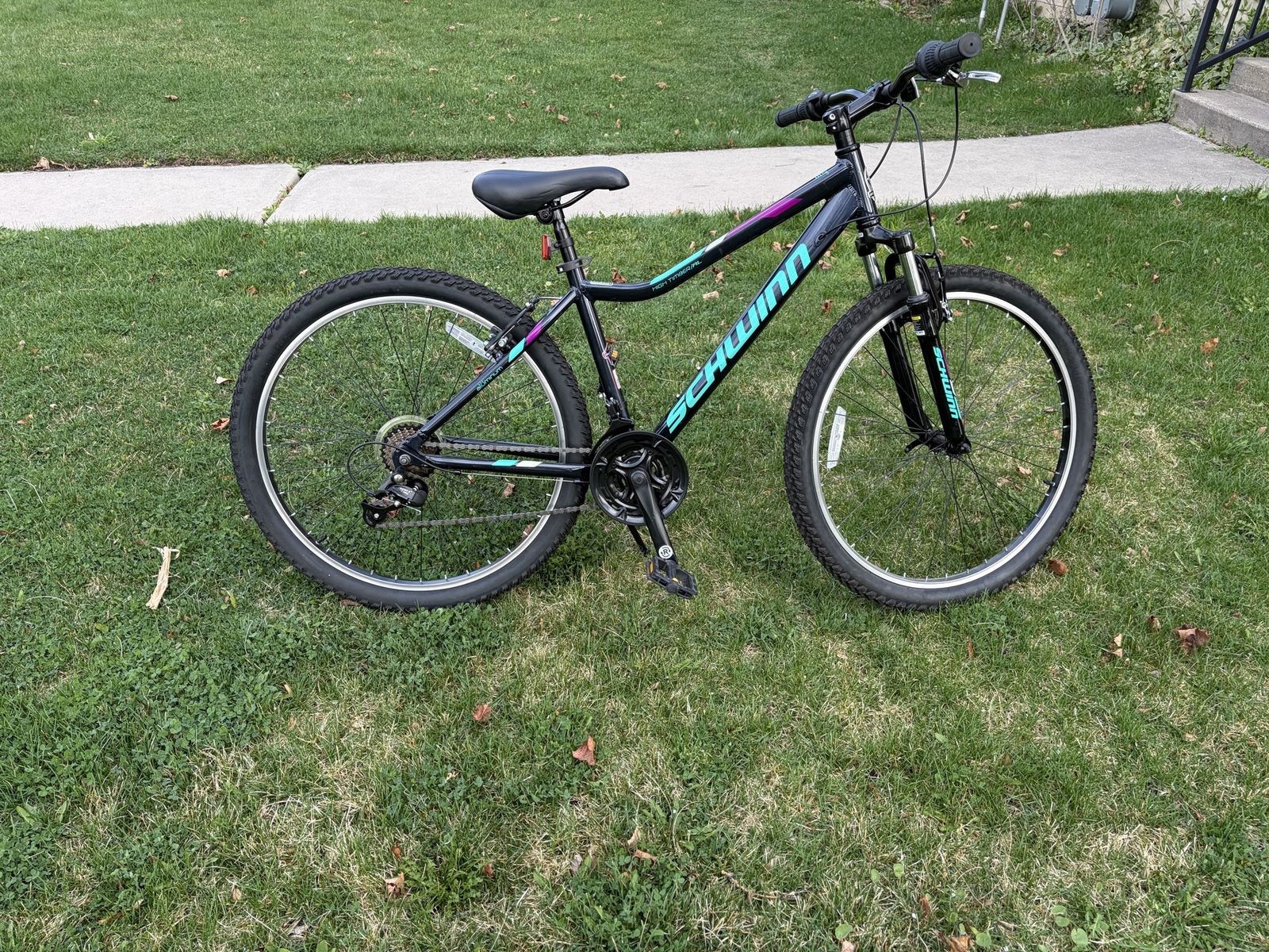 VenmoSchwinn Mesa adult mountain bike in excellent condition. This bike has barely been used and still looks almost brand new—tires still have the original tread indicators and everything is super clean aside from a little dust from storage.