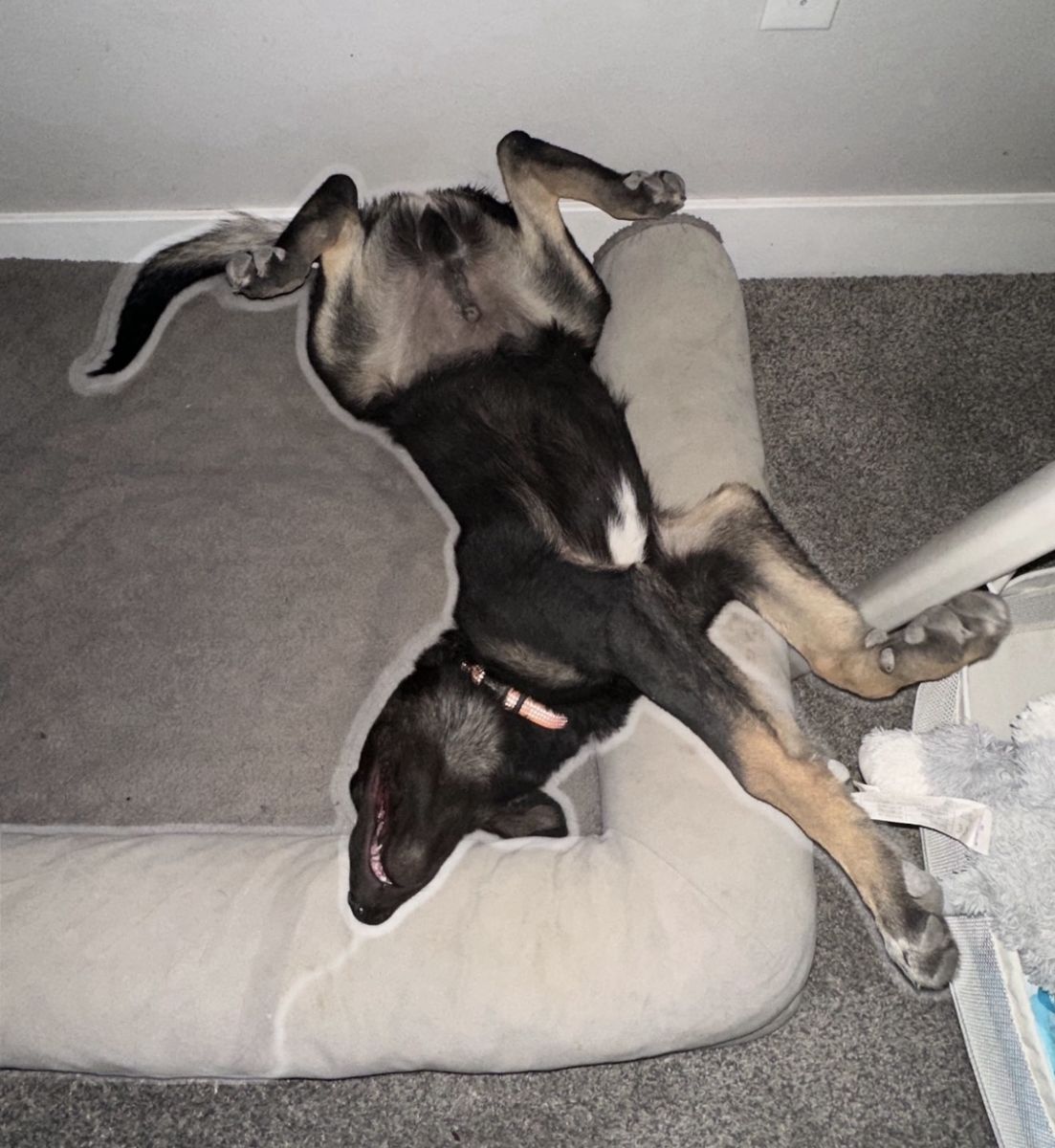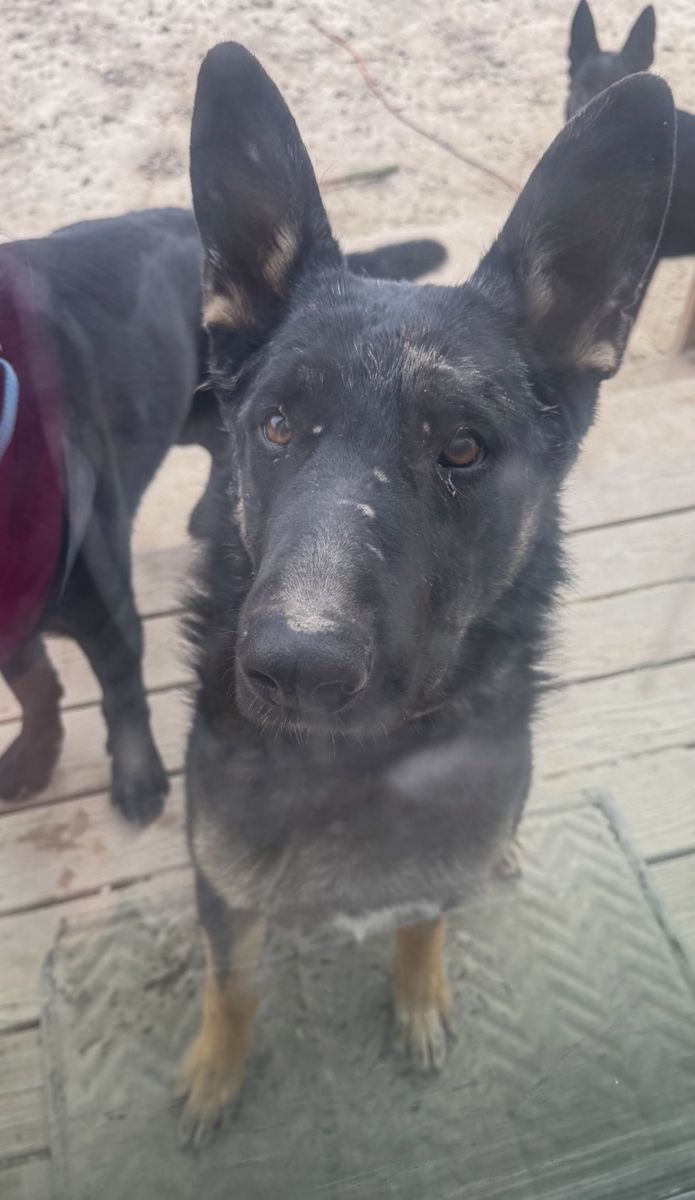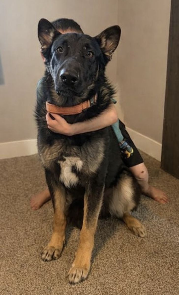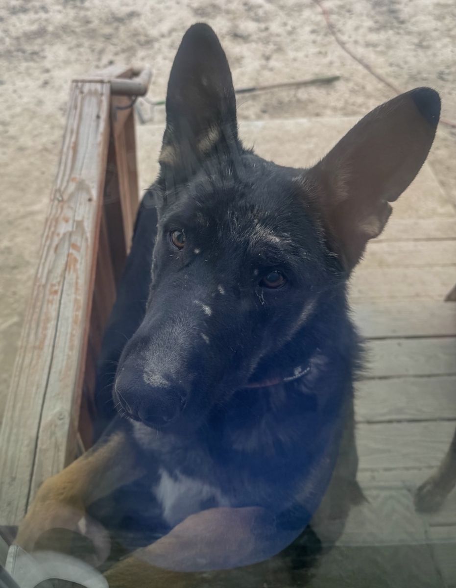 He's a decent sized German Shepherd (about 80 lbs) with a short coat.