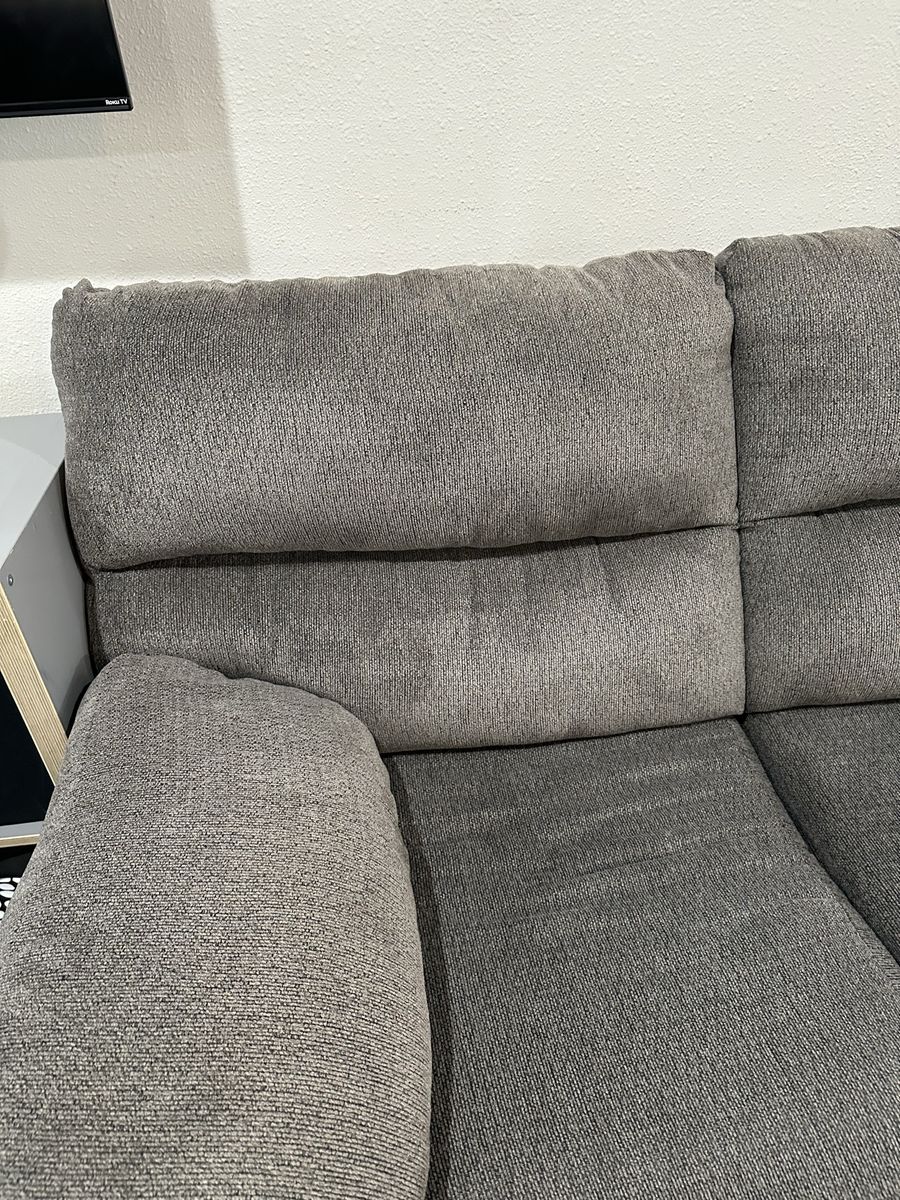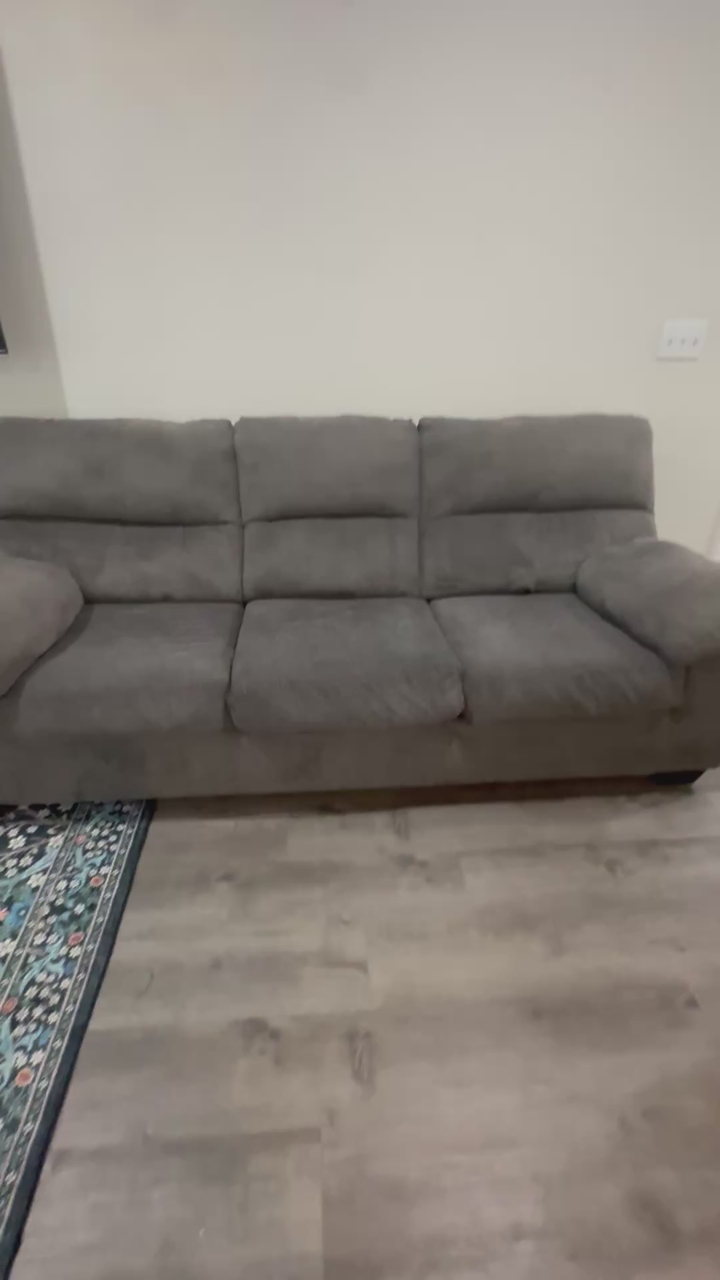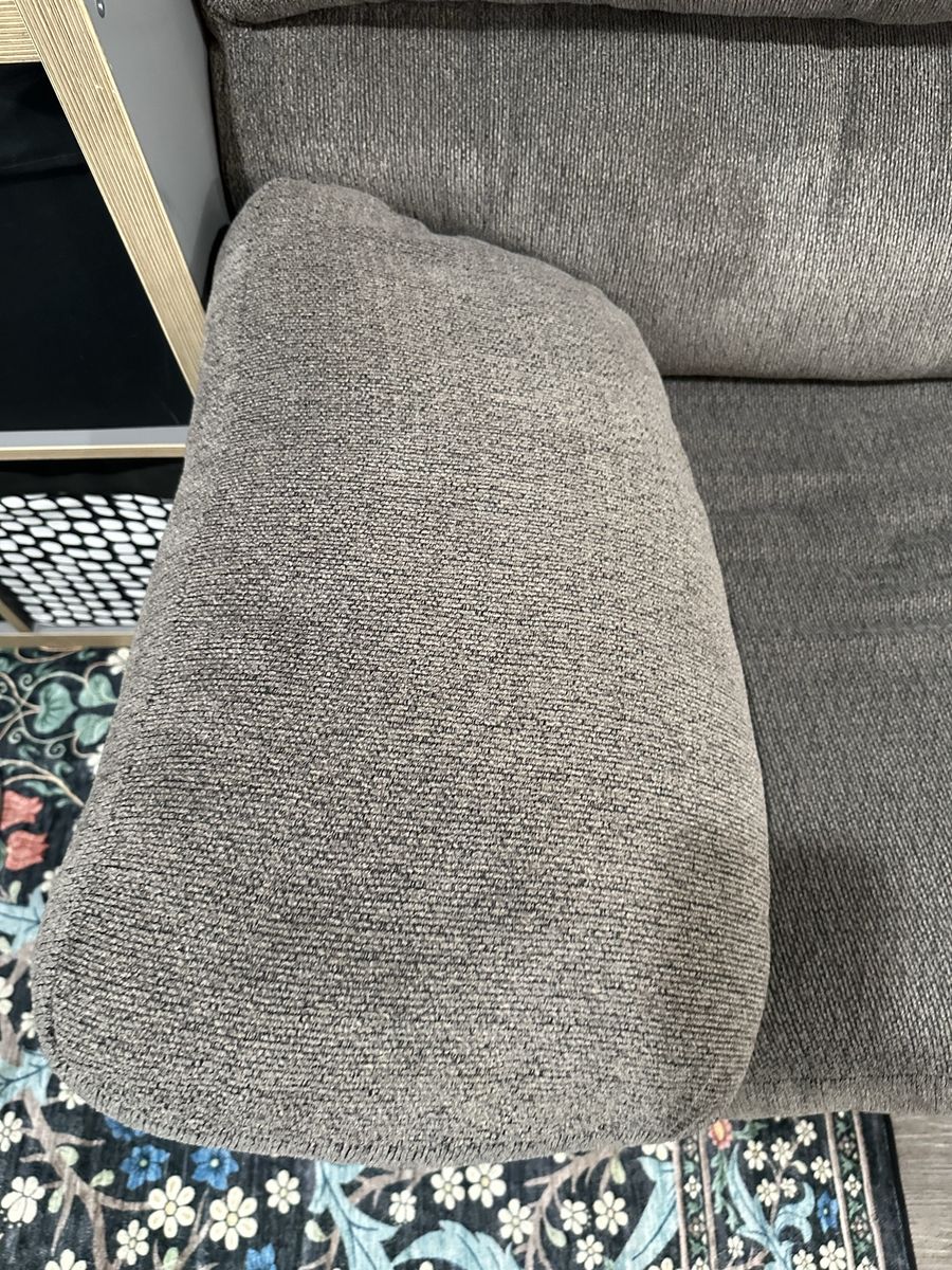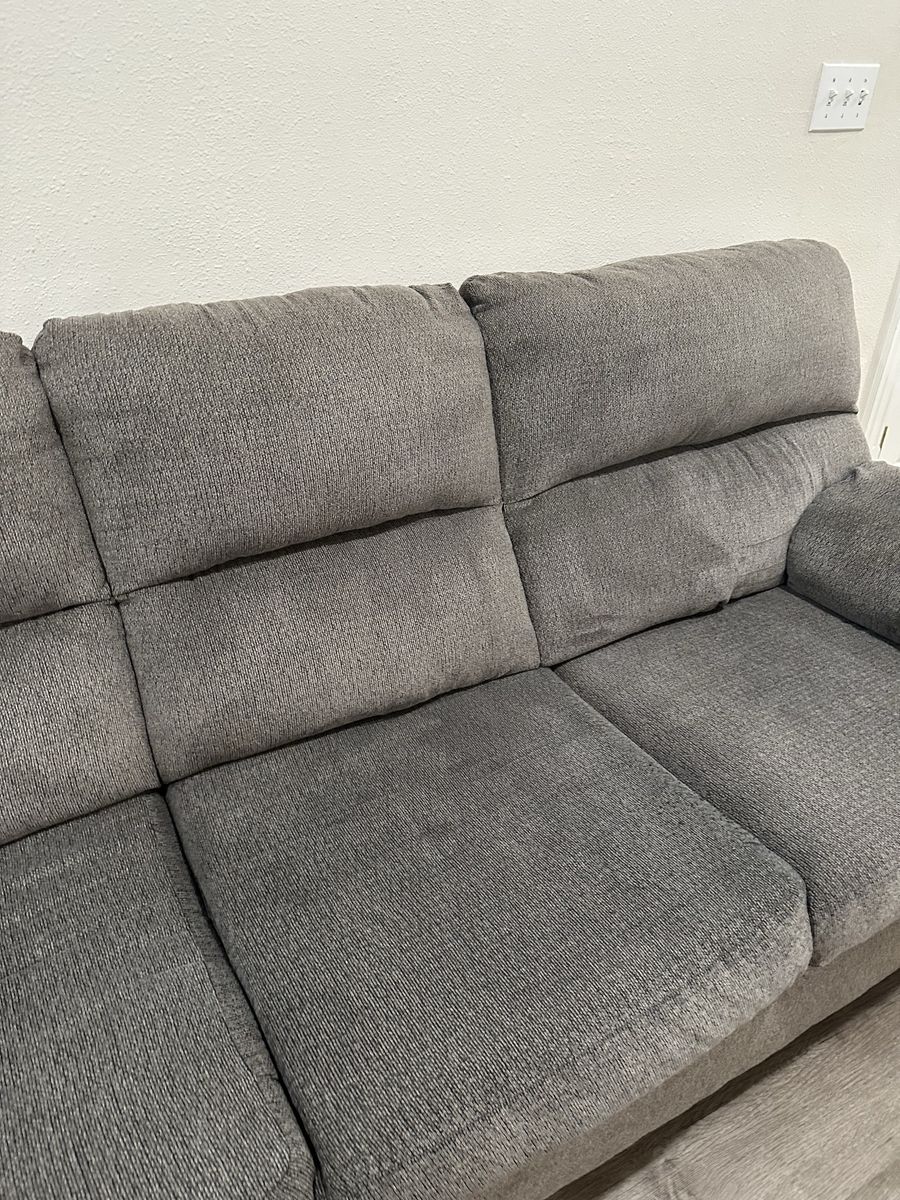 ZelleComfortable gray sofa in excellent condition—clean and ready for a new home! •Dimensions: 90” L x 38” W x 33” H •Neutral gray color •No rips, stains, or tears •Seat cushions are removable for easy washing