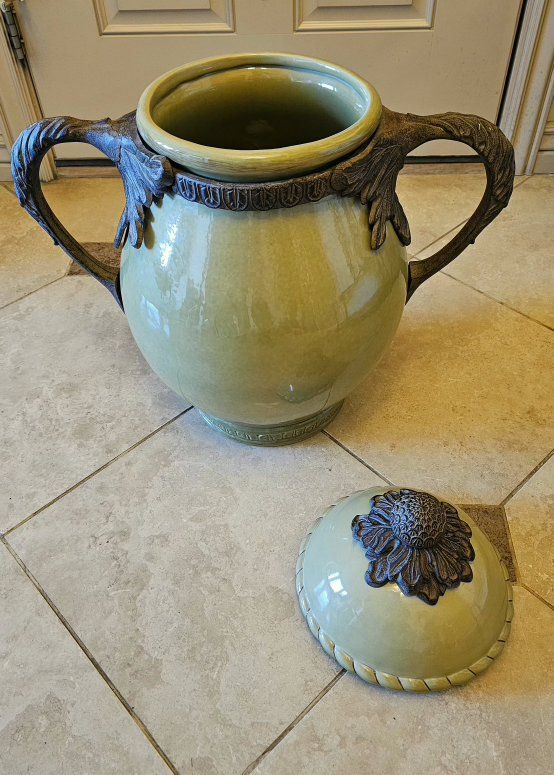 VenmoThis is a beautiful Porcelain/ Cast Iron Urn Vase. Absolutely no Chips/ Like New. Very Decorative for Floor or Tabletoop. Heavy!