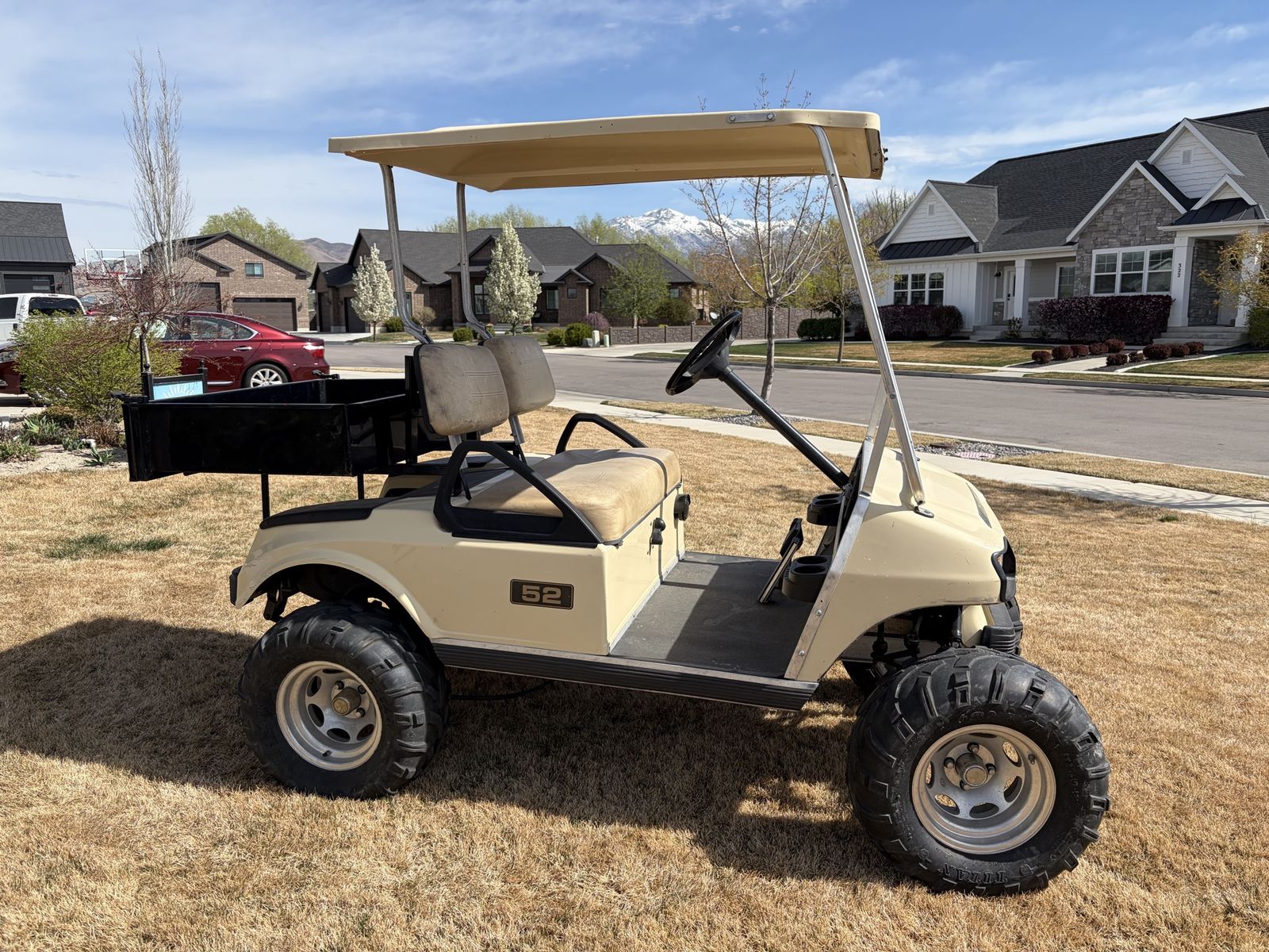 Car has 6” lift kit, with utility bed.
