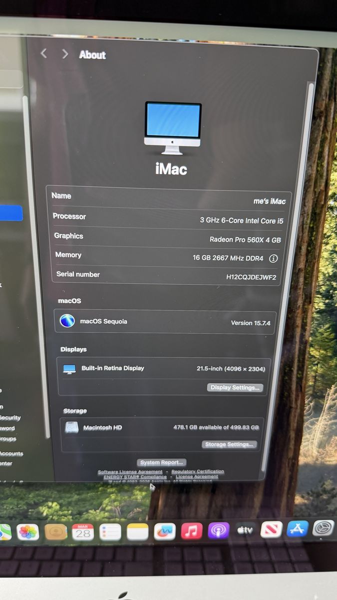 2019 iMac 21.5” 4K Display Intel Core i5 Quad Core 3.0 Ghz 16GB DDR4 RAM 500GB SSD Radeon Pro 560X 4GB Graphics macOS Sequoia