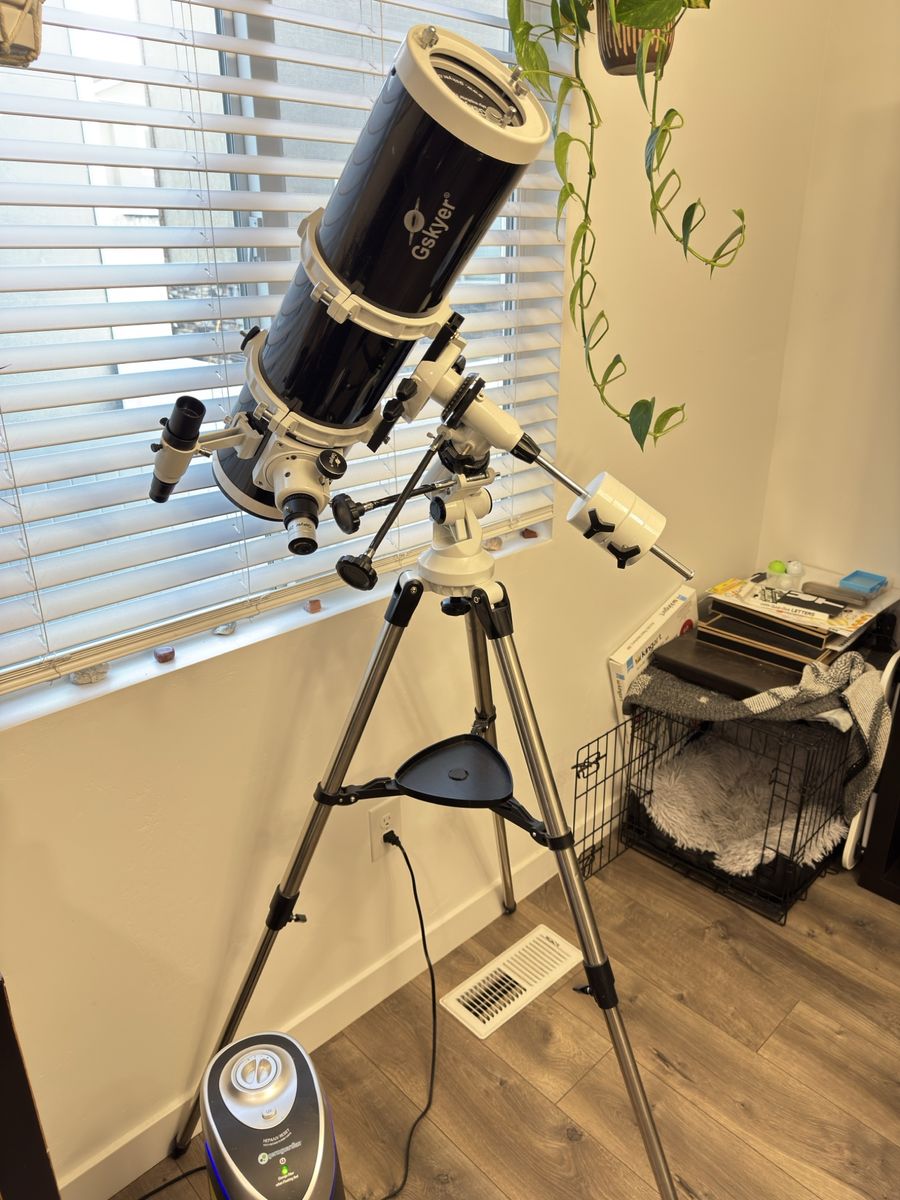 Selling a Gskyer 130mm / 650mm professional reflector telescope in new condition. This scope has not been used and is ready to go for anyone wanting amazing views of the moon, planets, and deep space.