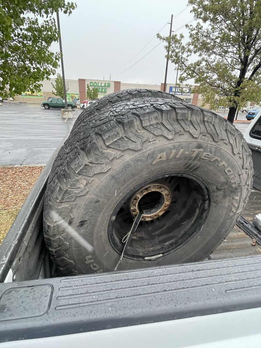 VenmoThese came off of my 2000 f250. They have about 20% of tread left. Let me know if you have any questions. The rims are in great shape and the brand is MOTO METAL.