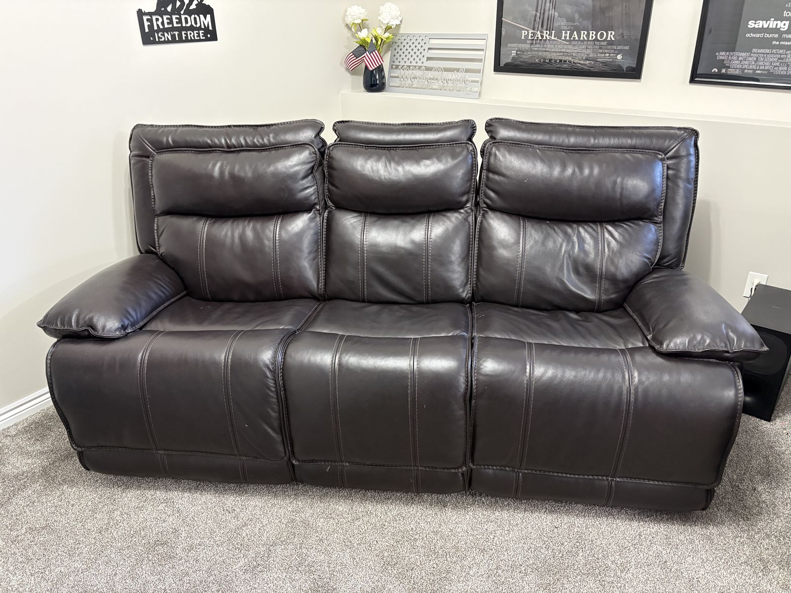 VenmoGreat loveseat and sofa. Bought from RC Willey. Moving and can't take with us. They are used but in excellent condition. Awesome furniture for movie room or living room. All seats recline. Loveseat has two seats that recline and act as rocking chairs when up right. It also has cup holders and storage in center console with charging ports. Seats are very comfortable and made well. They are heavy and will need multiple people to haul away. No delivery.