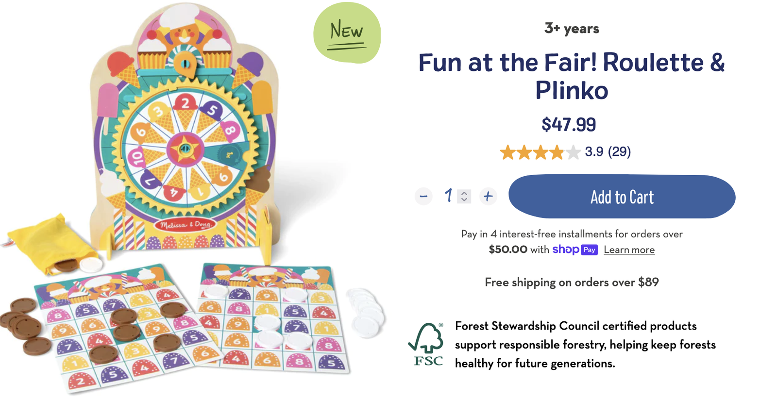 Drop disks in the top to play plinko, and spin the clicking roulette wheel for bingo and color- and number-matching games with this wooden double-sided tabletop version of classic carnival games of chance