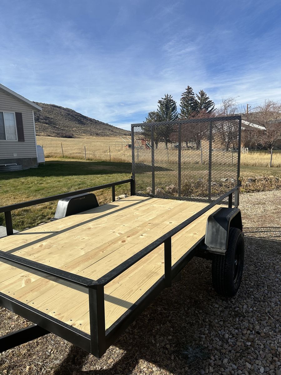 Custom built trailer with gate and working lights. Heavy duty steal frame