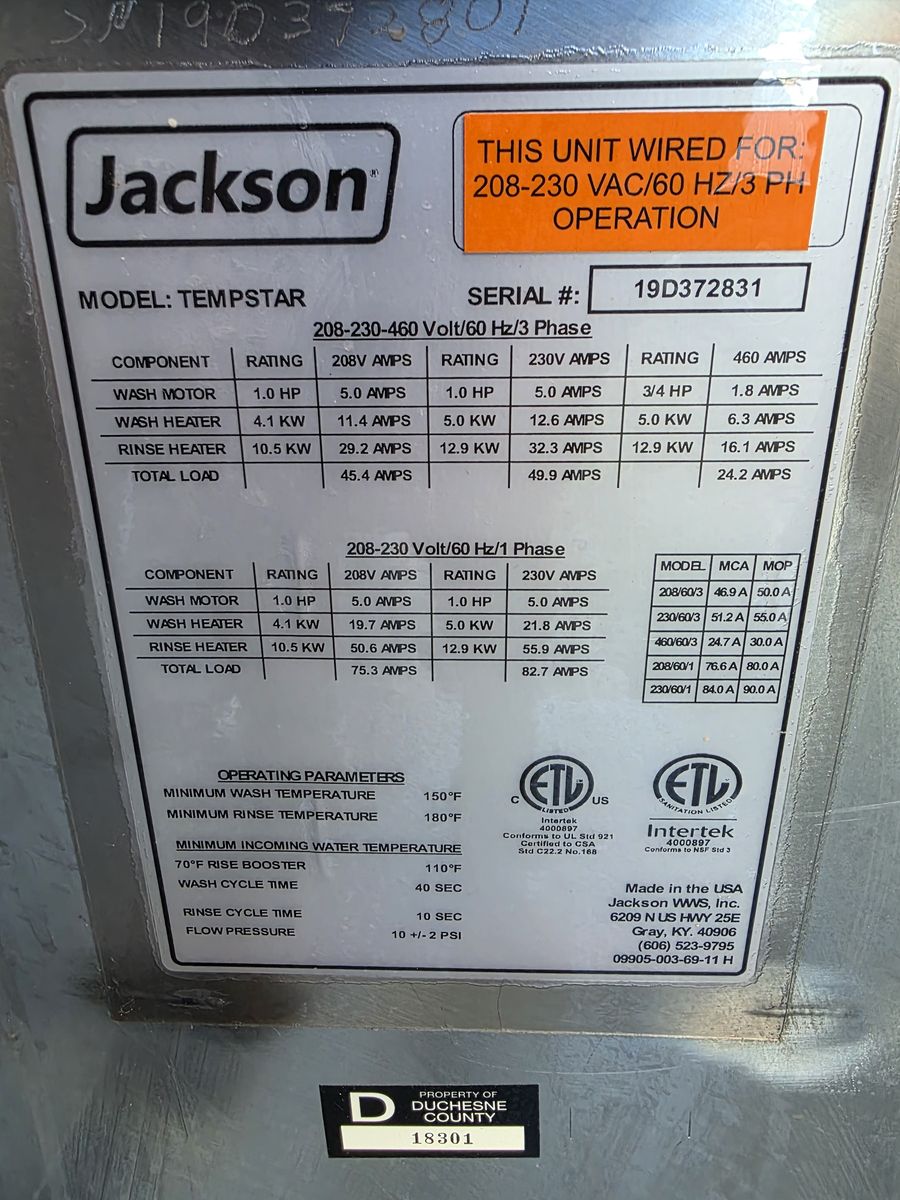 VenmoJackson Tempstar Dishwasher with Left Spray Table and Right Drain / Clean Table
