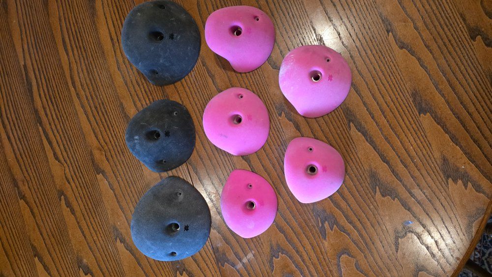 Venmoselling climbing holds, I have 50+ holds. Everything from kid friendly to technical climbing holds. let me know what sort of set you're wanting and I'll put it together for you. selling for $4-$7 a hold depending on size. The pictured set would be about $50
