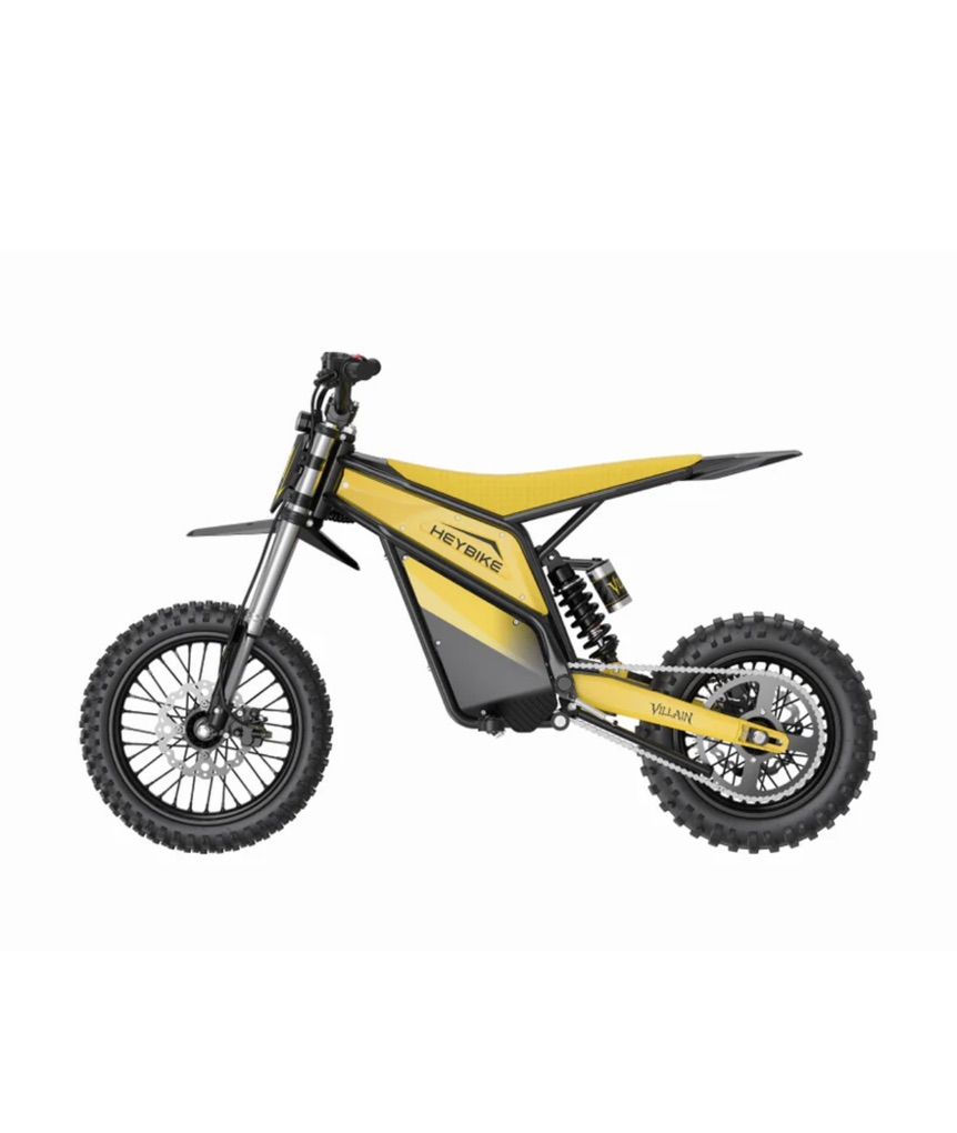 Heybike Villain is a 14/12-inch electric dirt bike built for the bold, style-driven new generation. It blends strong power, long-range capability, and responsive control, making it ideal for group rides, city open spaces, backyard fun, and trails.
