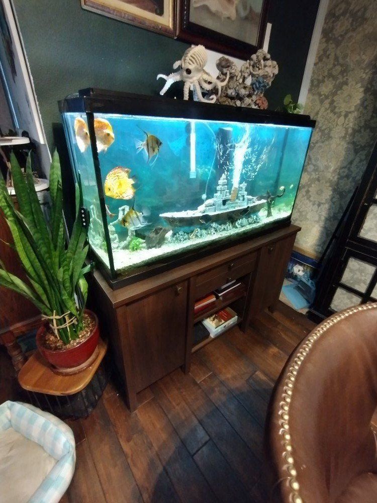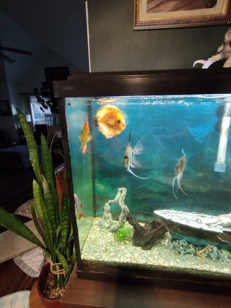 Venmojust trying to re-home our aquarium with the fish in it. it's a 55gl tank with the stand and all accessories we have also included are all the fish as listed. two orange discuss two angels and others not sure what they are called but there is about twelve fish total. asking $500 obo. thanks for looking. call or text Jon at 801-888-9453