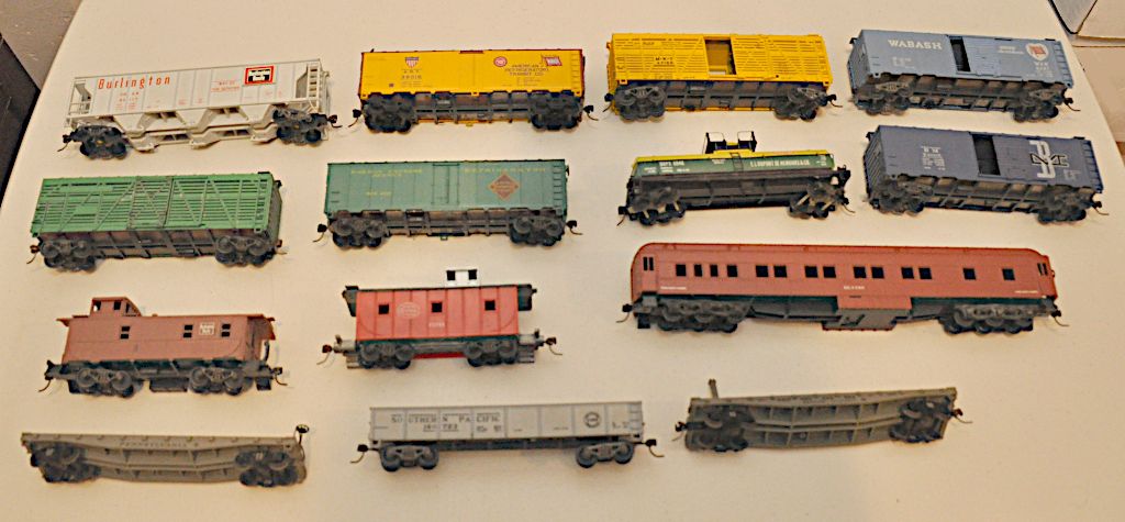 For sale is a set of HO scale cars and engines. Most are assembled with Kaydee couplers. Will sell individual items, text for prices. Most have Kadee couplers installed.