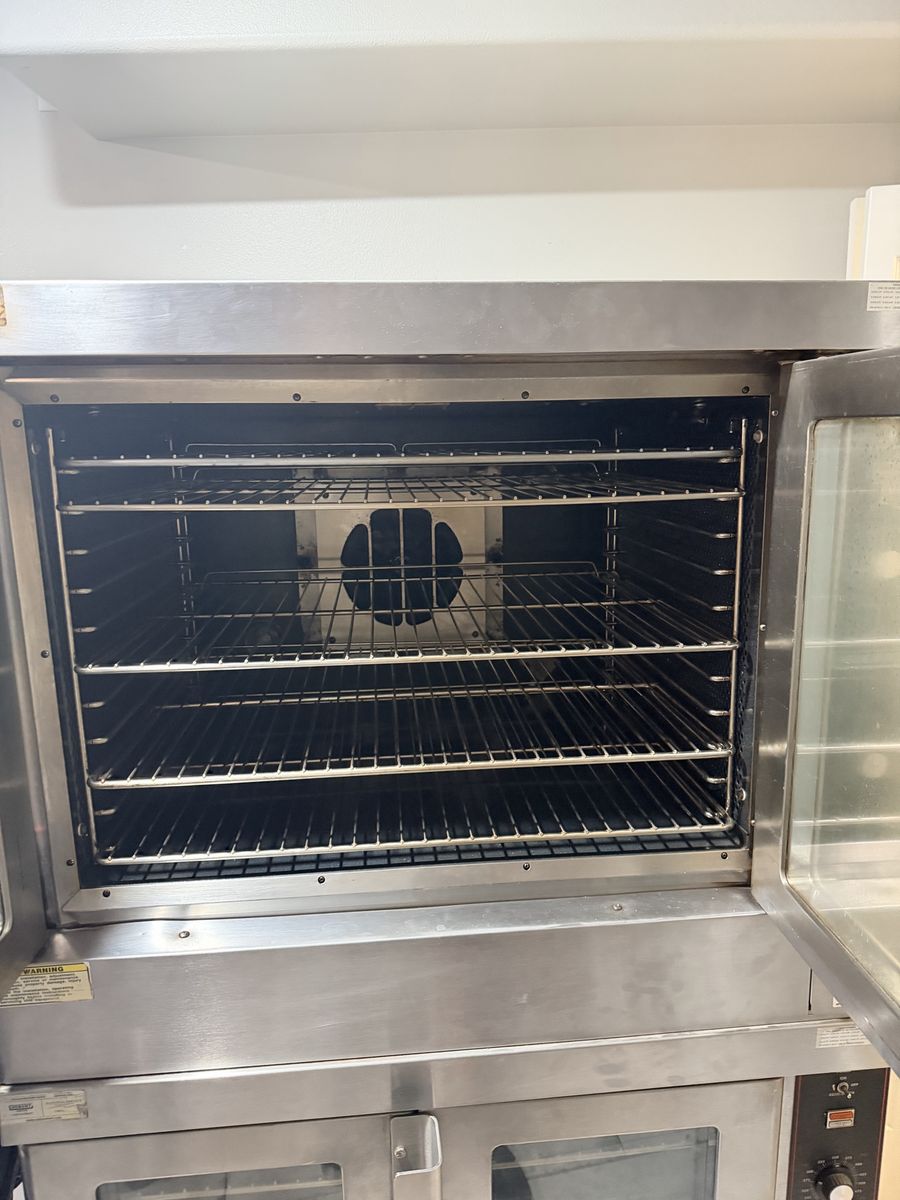 • 240V, 3‑phase, 40A • Double‑stack electric convection • ~40”W × 37”D × 72”H • ~900–1,000 lbs • Racks included in both ovens