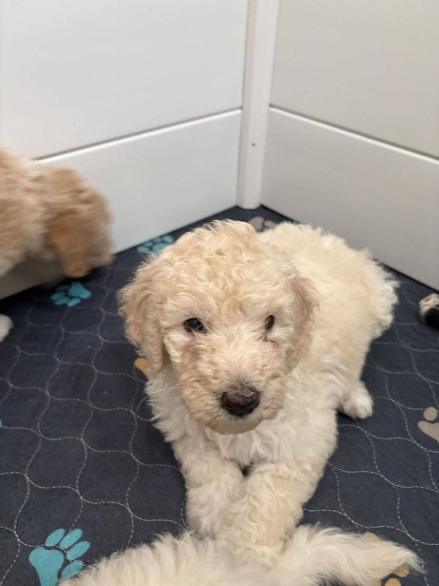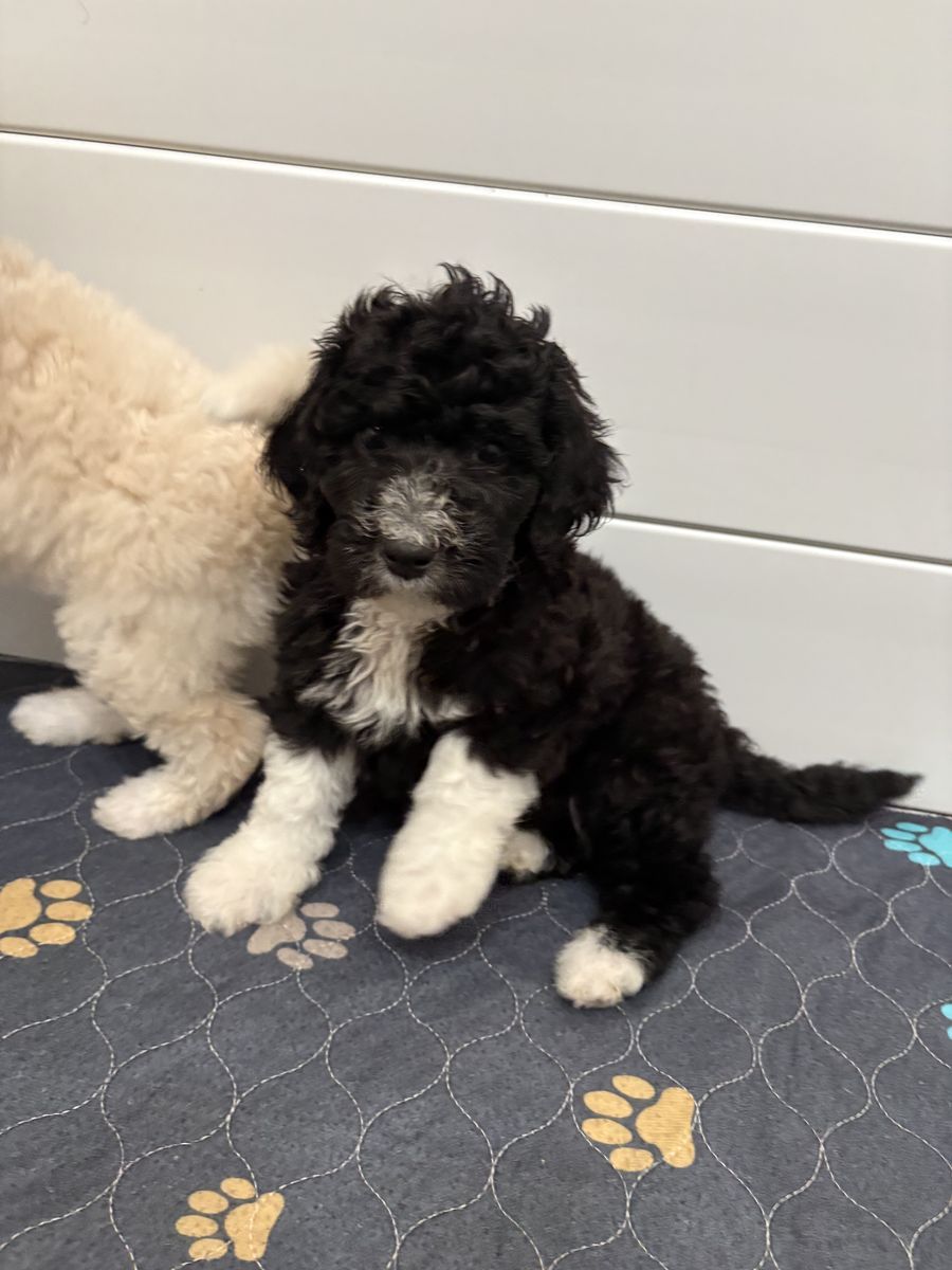 VenmoOnly 4 Sheepadoodle puppies left. We have 2 males and 2 females, born 1/17 and ready for their new home. They have had their first shots and deworming done. Potty training already started. Mom is a AKC registered Peach colored Poodle, Dad is a Blue Merle F1 Sheepadoodle. Last picture is of the parents.