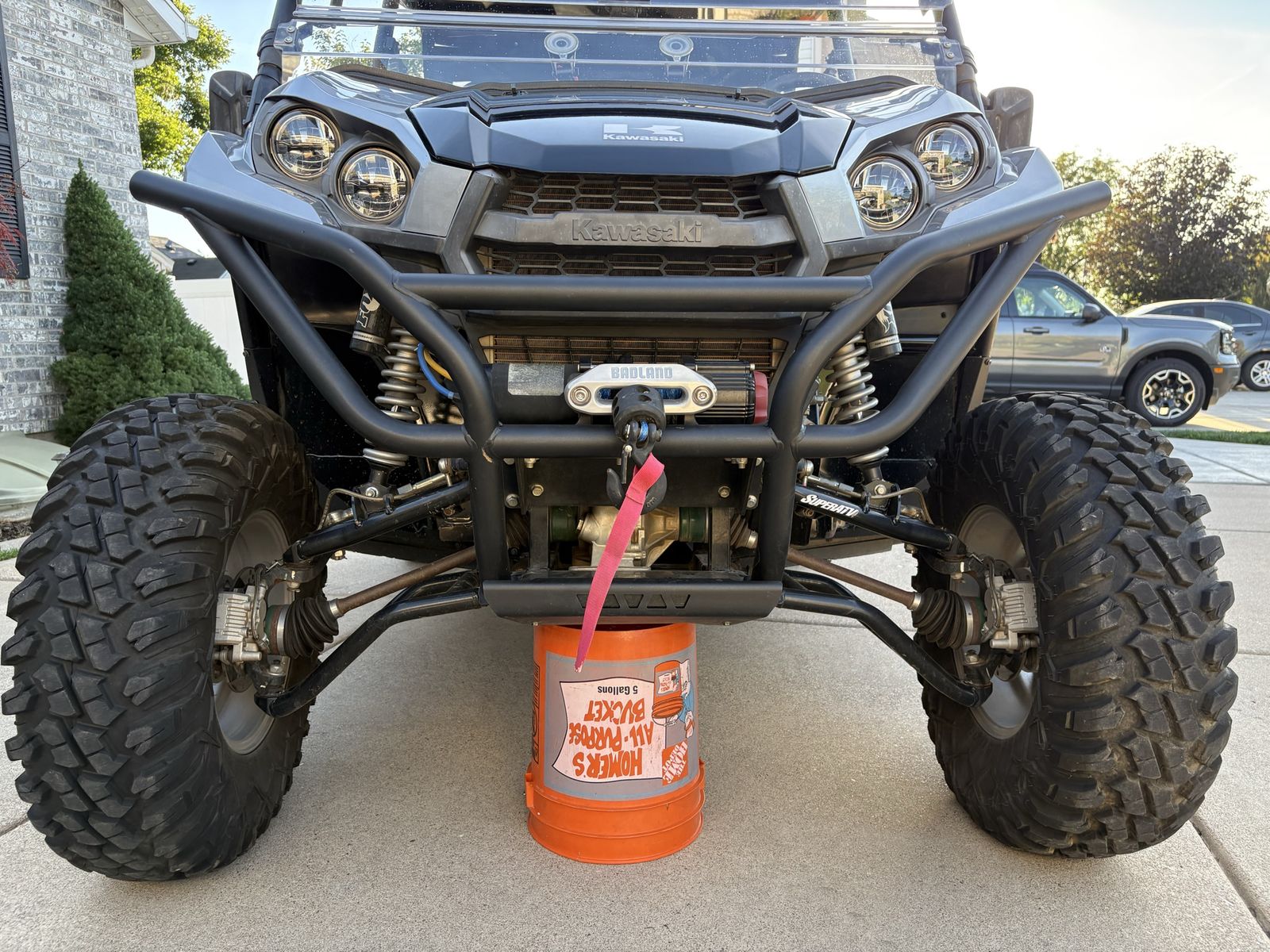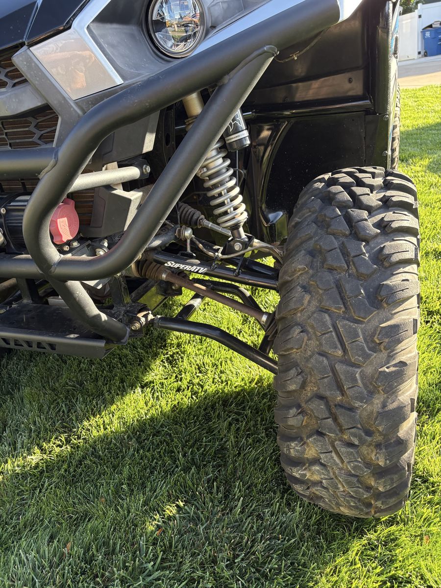 2″ bracket lift + SuperATV A-Arms + 30″ Tusk Terrabite tires Adds ~4″ over stock, dramatically increases approach, departure, and obstacle clearance