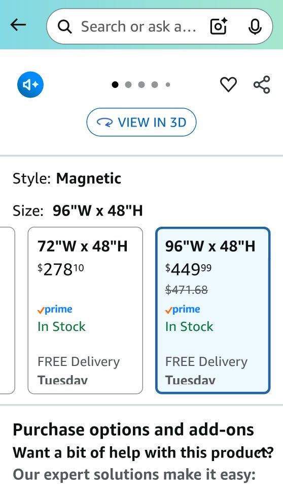 GooglePay96"x48" Brand new in the box. One inch too wide for my wall.