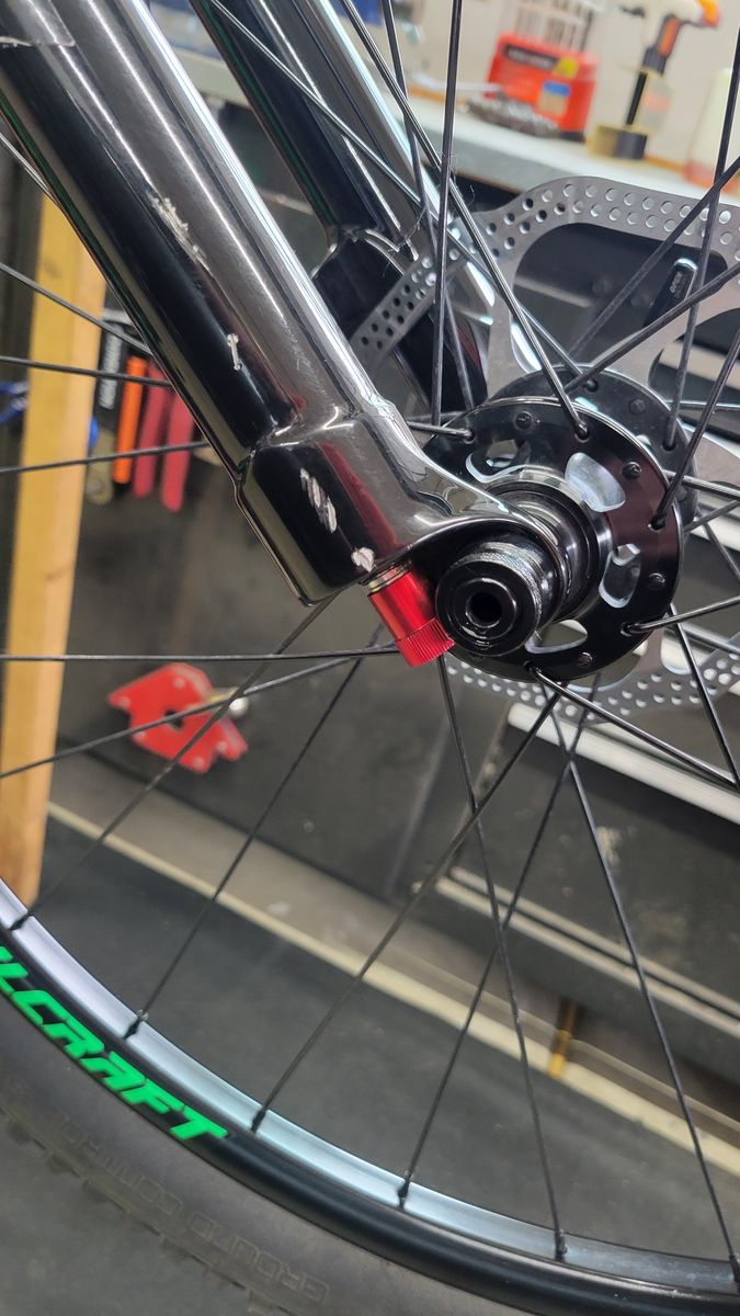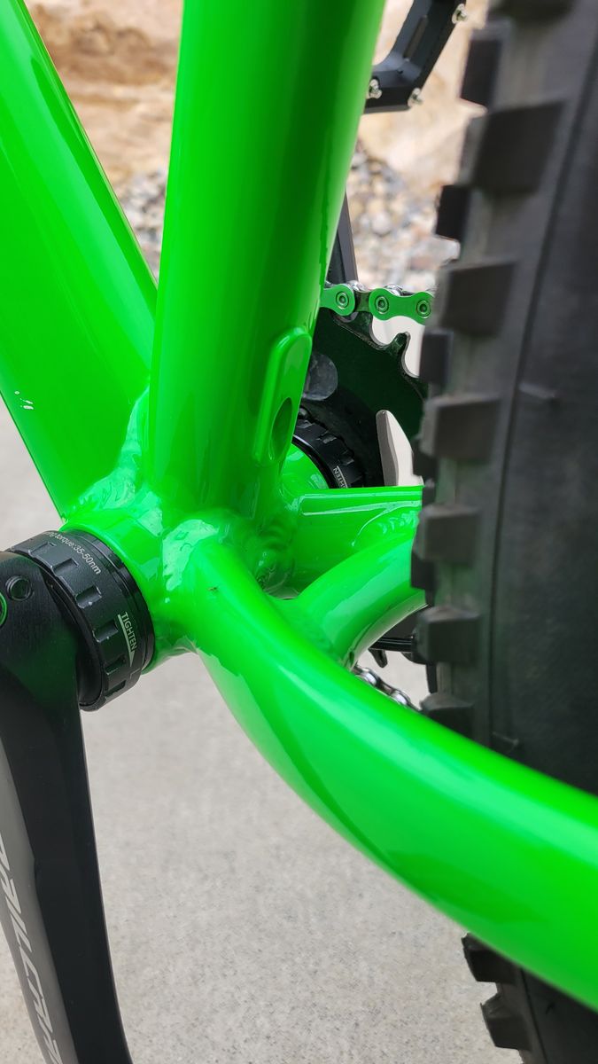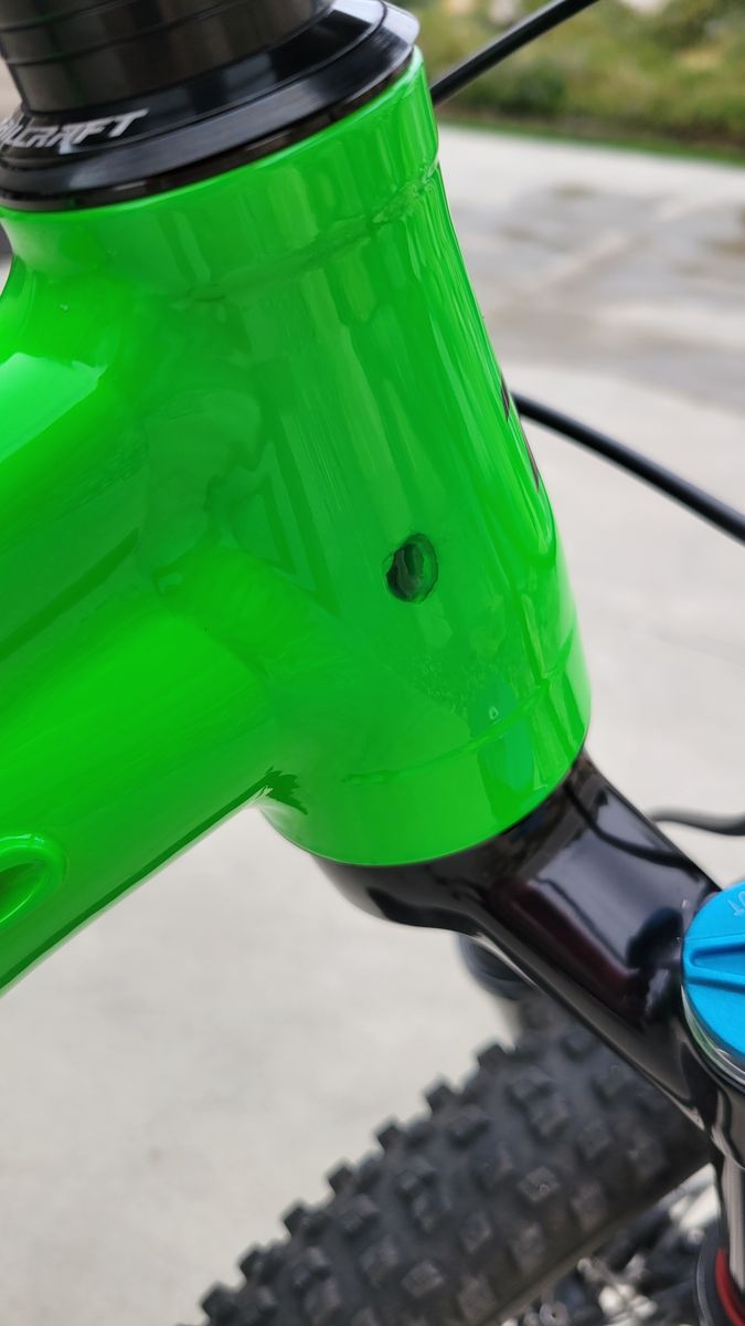 Minor cosmetic scratches. One 1/4 inch chip on headtube, but painted over (see pic).