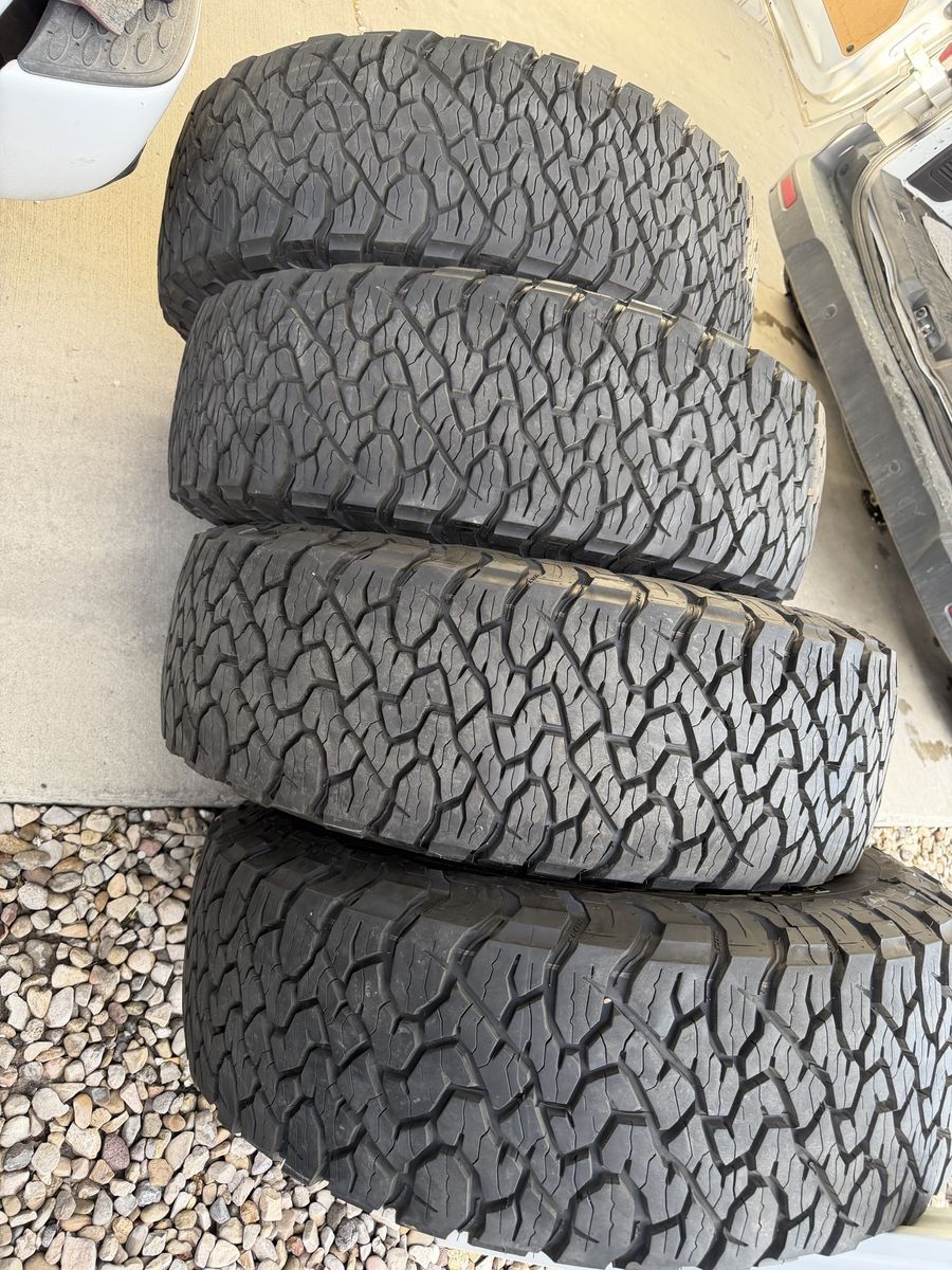 Set wheels and tires off new 2026 GMC sierra AT4 3500 HD size 275/65/20 tires Are BFGoodrich All terrain A/T Lees 1000 miles and them 8 Lug TPMs sensors and lug nuts included