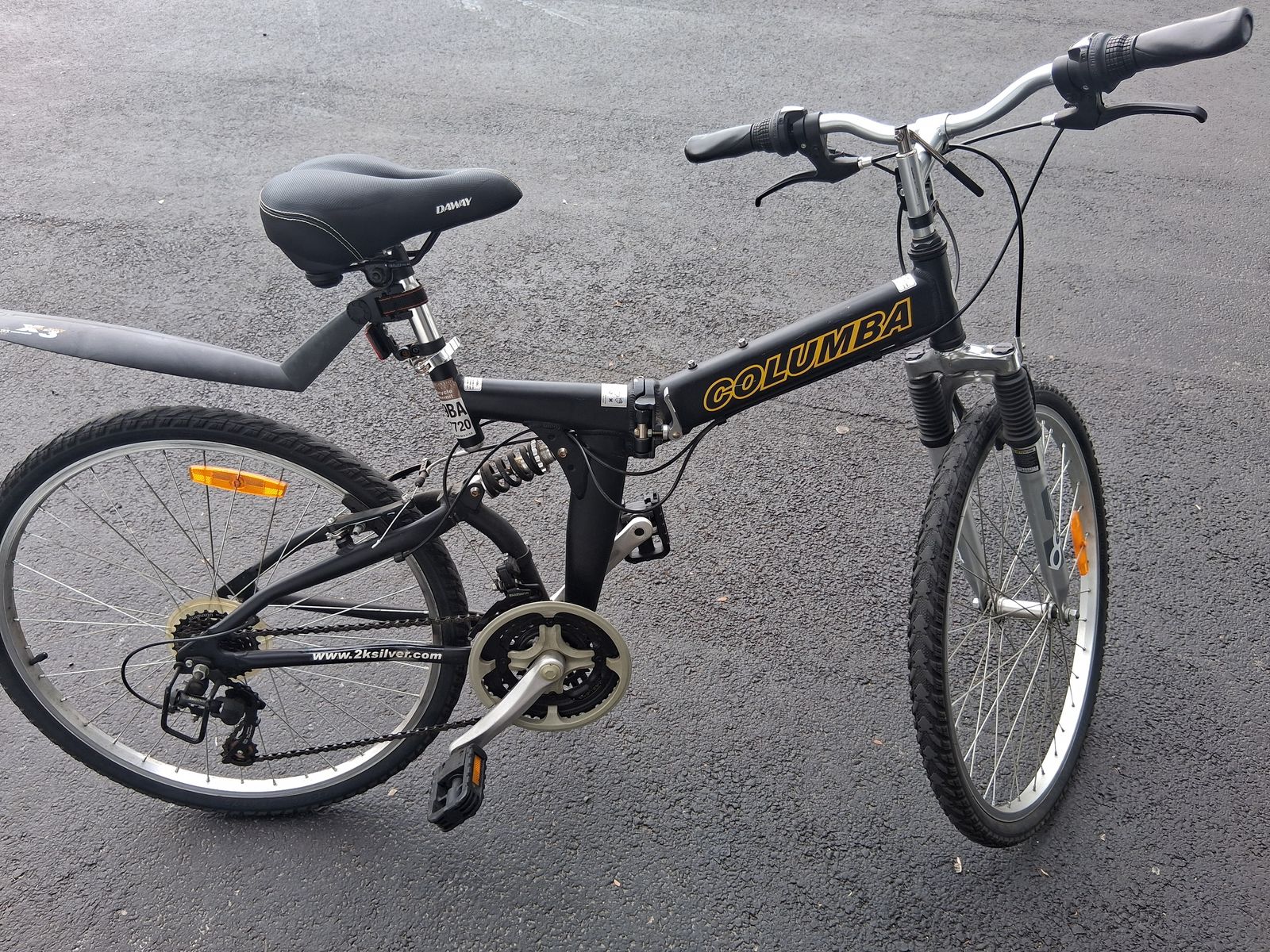 VenmoI've gotten some good use out of this bike, but I decided to part with it to free up some space. Like the title says, its a folding bike (see the 3rd and 4th photos). The pedals also fold inwards (see 5th photo). I have the seat at about halfway down in the photos so it can be raised or lowered depending on preference. The bike also comes with a bolt tightener, handlebar accessories, bell, bike lock, rear wheel fender, and the original manual. Message me for any questions.