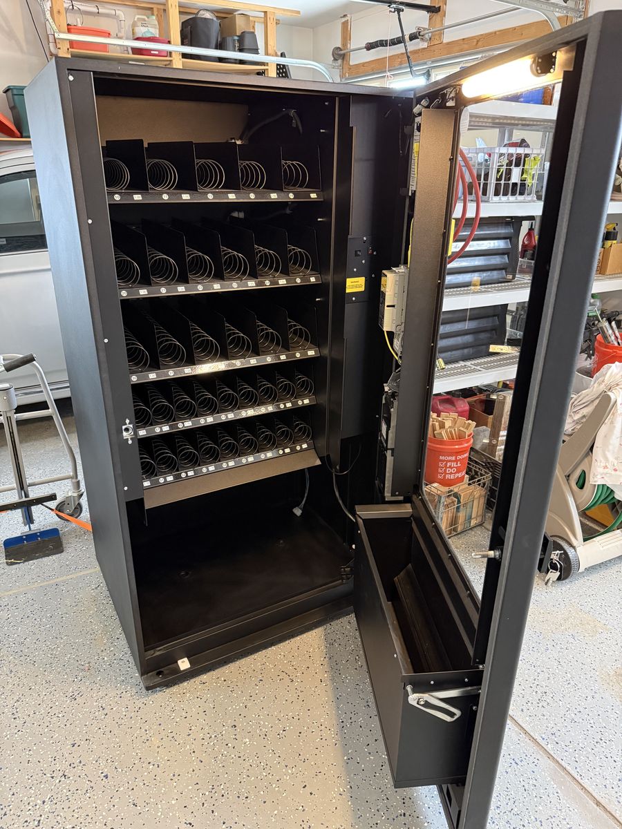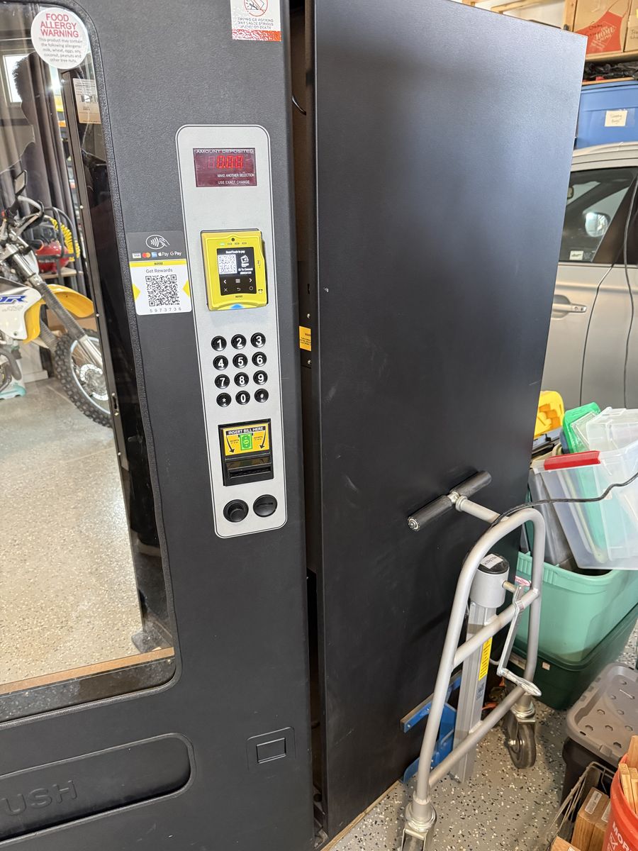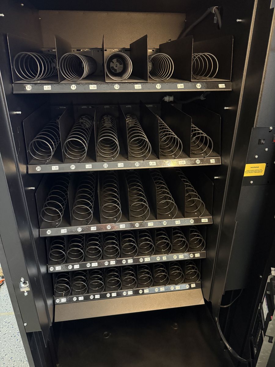 ApplePayThis is a Snack only machine, so no refrigeration. It has 35 rows for snacks. The machine has some small dings and dents but nothing that stands out. Contact me and I'm happy to send you a video of all the coils in action, machine works well and is ready to go. It will accept cash, coins, and credit card. The card reader is a NAYAX VPOS touch, it's the latest and greatest from NAYAX, it will do tap to pay, as well as physical credit cards. NAYAX has a process to get the card reader moved over to a new owner, I'll make sure that transition happens with you if you purchase the machine. If you would rather purchase without the card reader thats no problem, I'll knock $200 off the price, just be aware it will leave a hole on the machine until you get another reader or fill it with a blank.