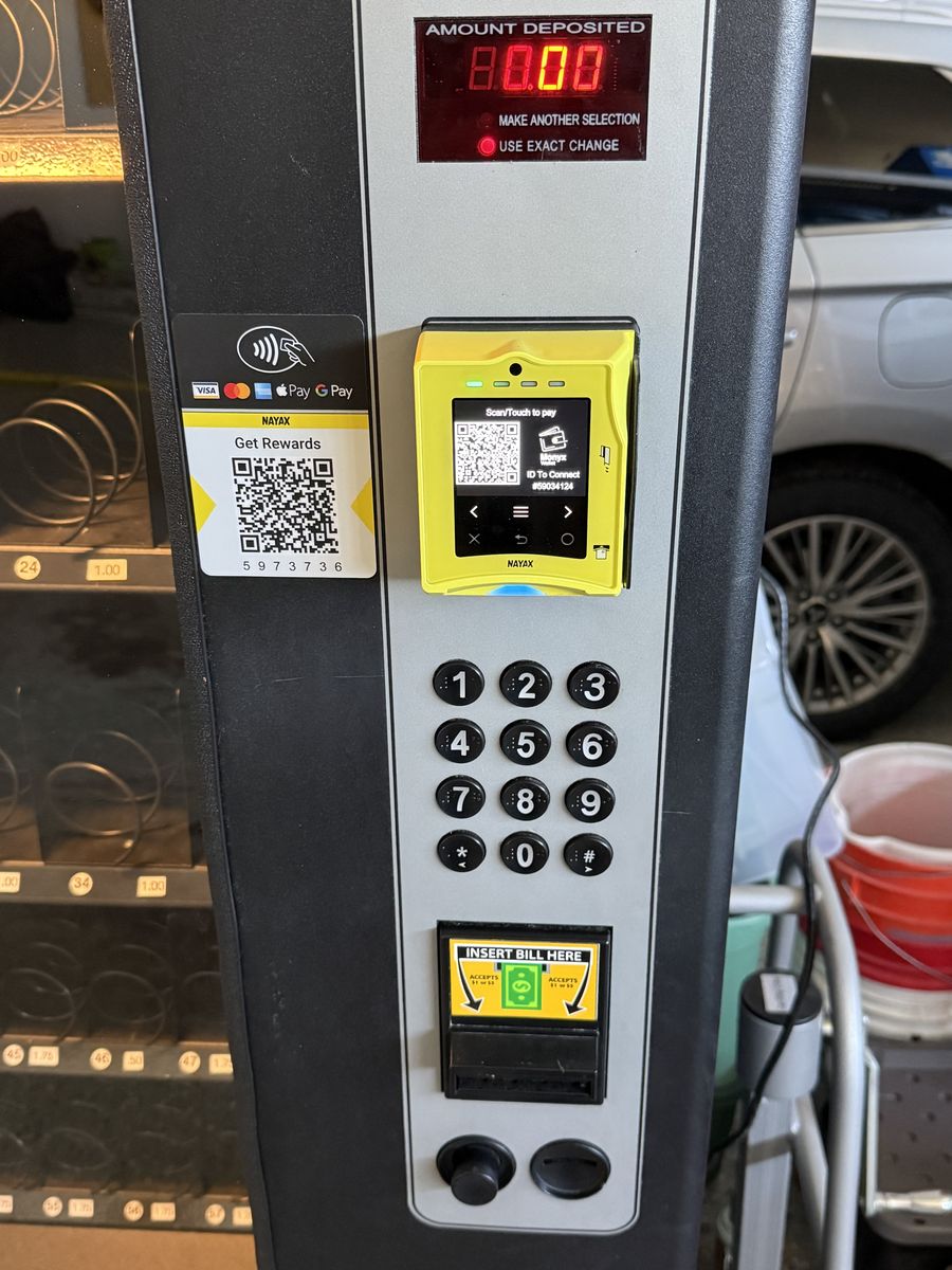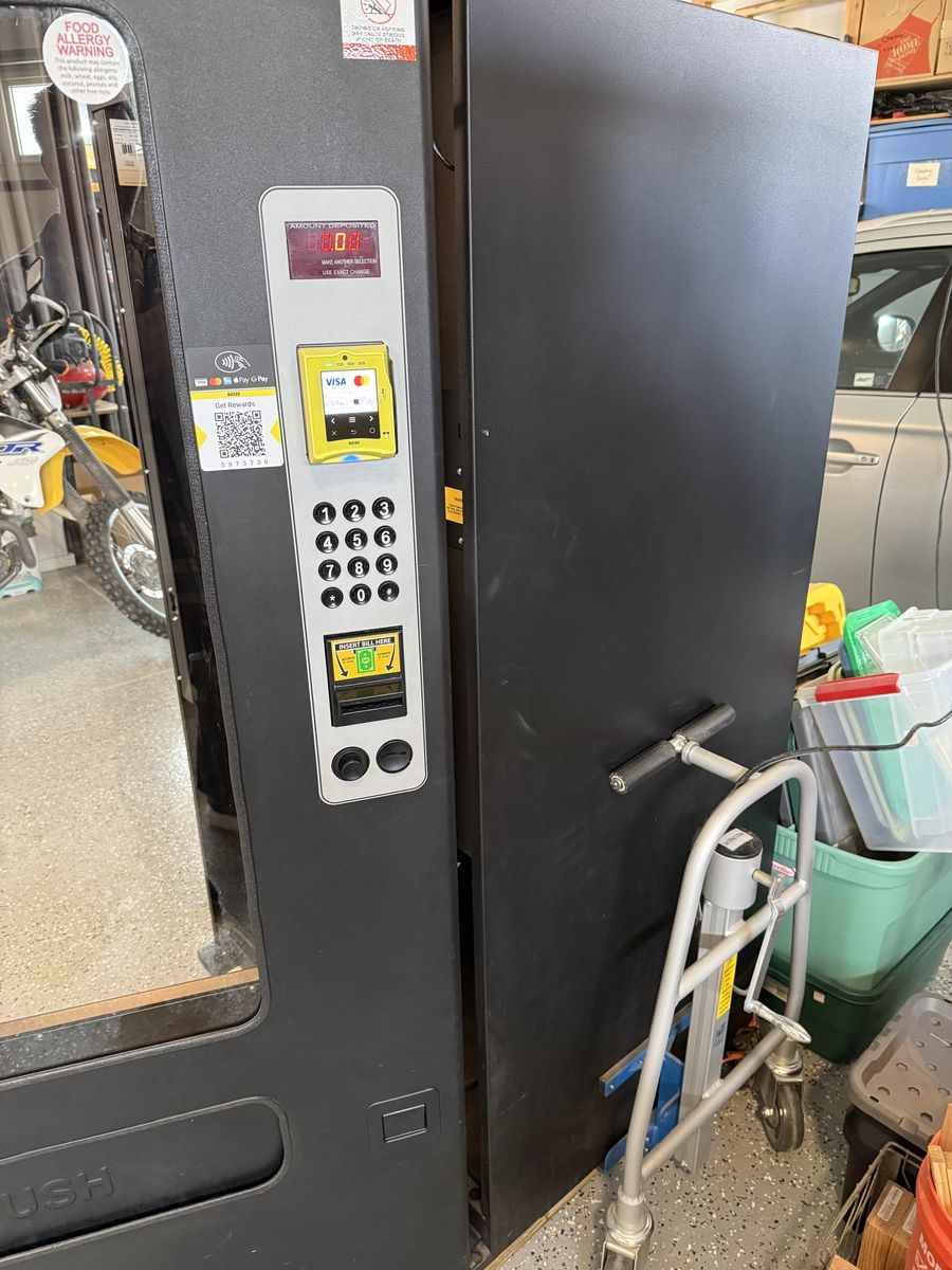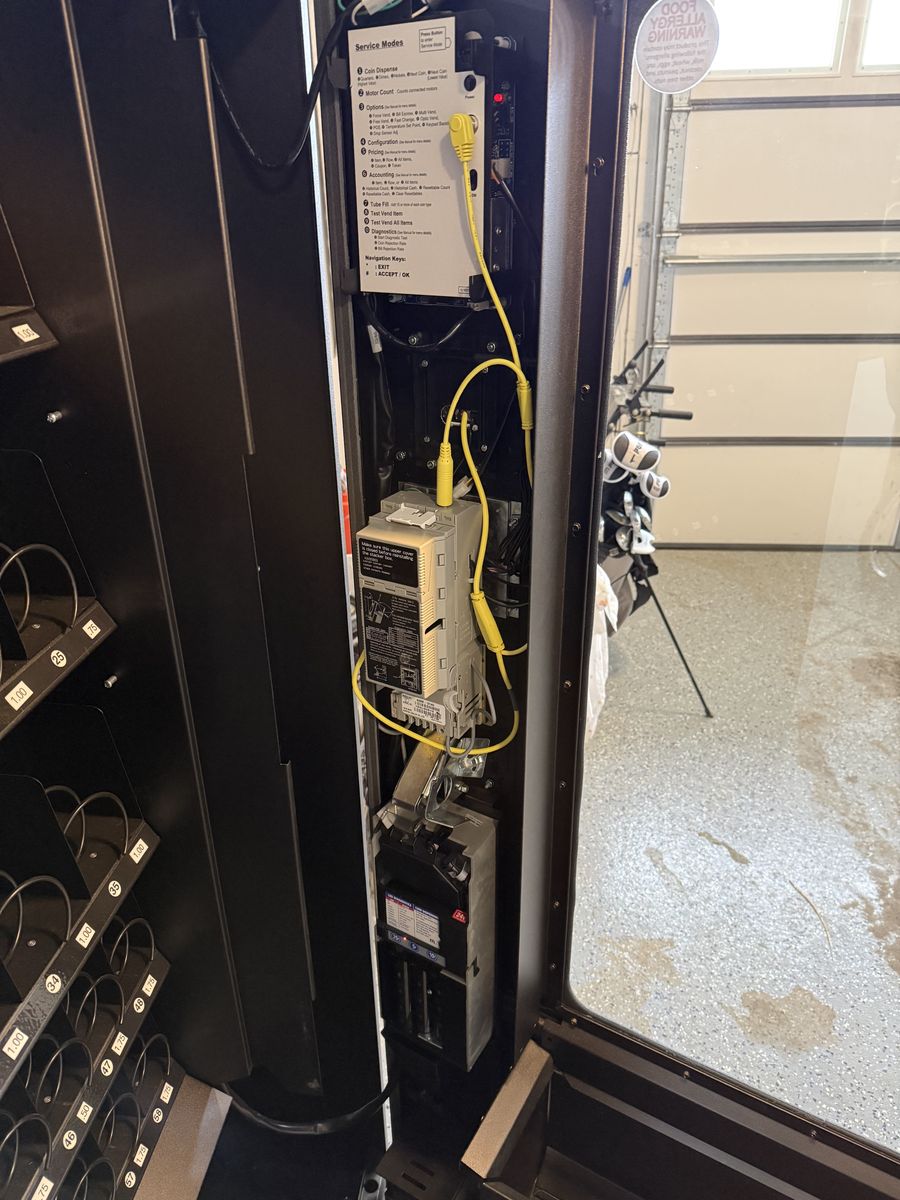 ApplePayThis is a Snack only machine, so no refrigeration. It has 35 rows for snacks. The machine has some small dings and dents but nothing that stands out. Contact me and I'm happy to send you a video of all the coils in action, machine works well and is ready to go. It will accept cash, coins, and credit card. The card reader is a NAYAX VPOS touch, it's the latest and greatest from NAYAX, it will do tap to pay, as well as physical credit cards. NAYAX has a process to get the card reader moved over to a new owner, I'll make sure that transition happens with you if you purchase the machine. If you would rather purchase without the card reader thats no problem, I'll knock $200 off the price, just be aware it will leave a hole on the machine until you get another reader or fill it with a blank.