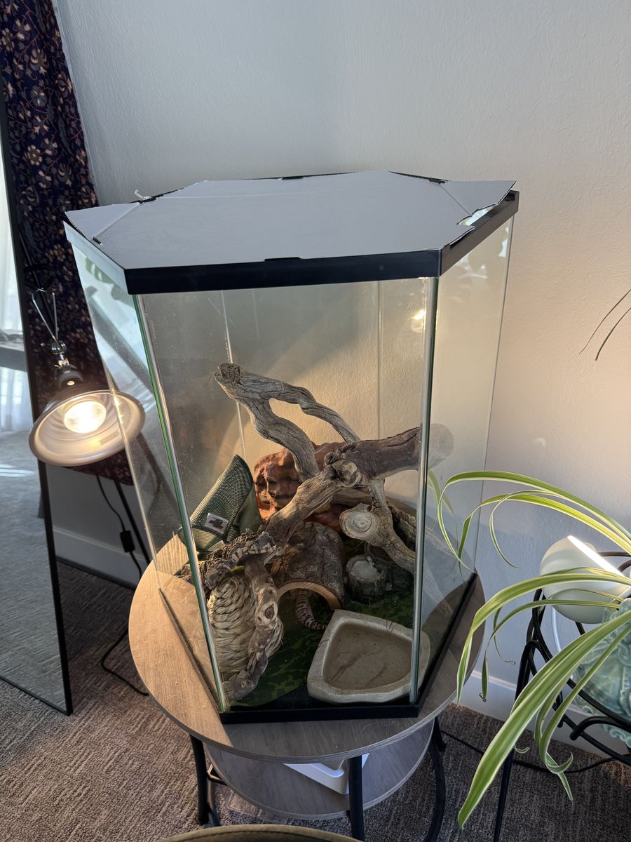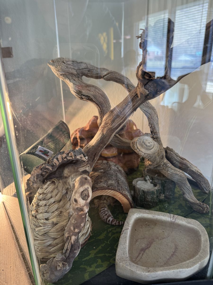 Meet Spatula, the Leopard Gecko! He's three years old, and he's very kind and gentle. I've loved the time I've had with him, but my husband and I are traveling a lot in the next few years for school, and we don't want him to be neglected. We'd love for him to find a new home where he'll receive lots of love and attention. No payment necessary. All the supplies shown in the photos will be included. Thank you!