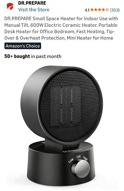 VenmoBrand New in the box Dr. Prepare small indoor fast heating electric ceramic space heater. Perfect for an office, bedroom, bathroom, etc. All the details are in the pictures. Retails for $20. Asking $12. Text if interested 801-903-8337