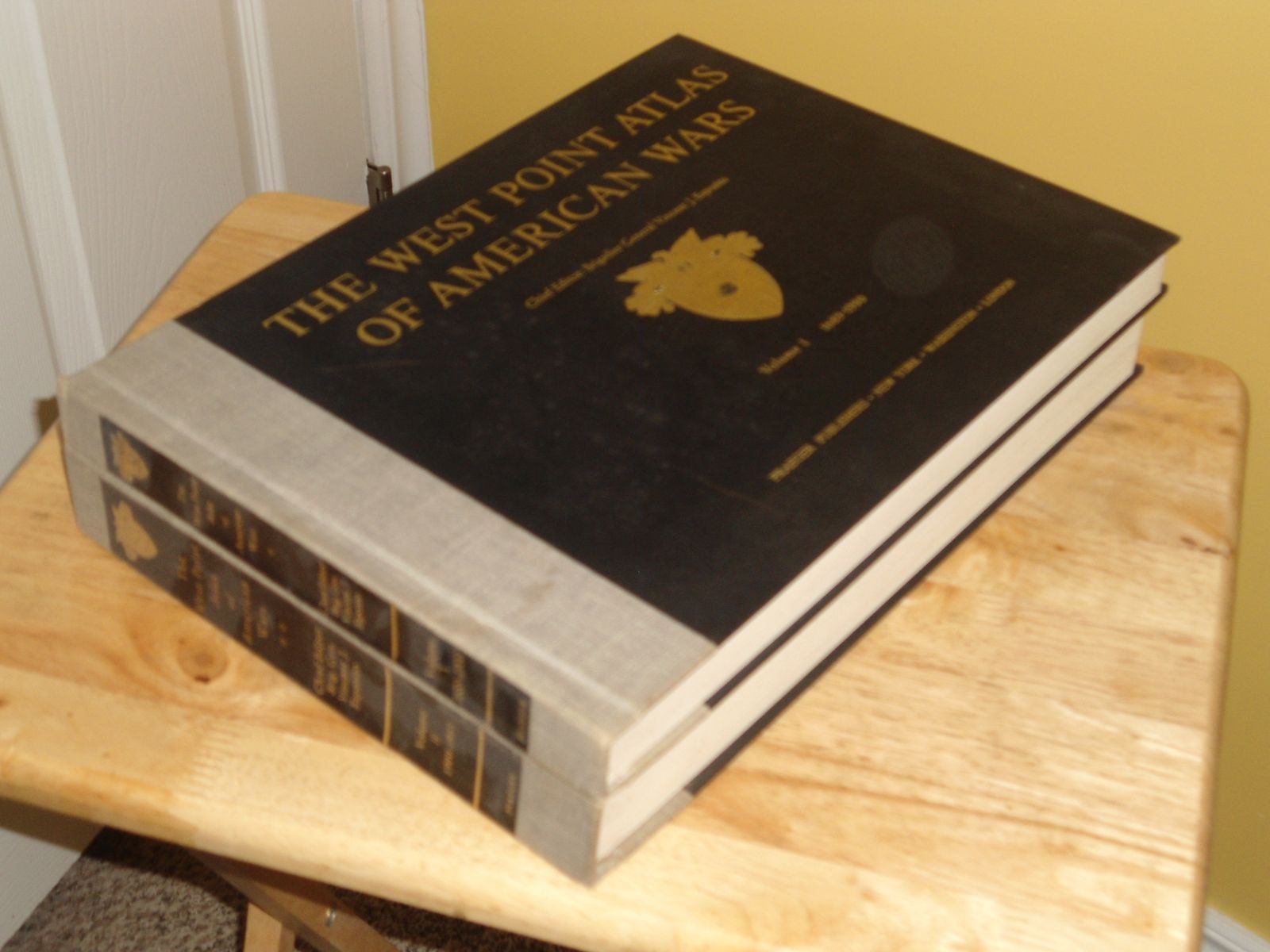 Hardcover set West Point Atlas of American Wars. This rare two volume set is in excellent condition. It contains hundreds of highly detailed color maps and precise historical battle strategy descriptions of American Campaign starting from 1689. These are the same texts used at our U.S. Military War Colleges. 1st $40.00 takes them from my smoke free home. Call 385 542-8937 Thank You.