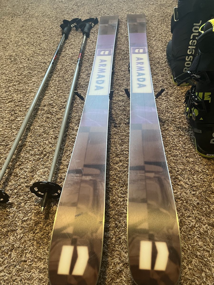 VenmoI have for sale a pair of Armada Arv 84 skis (with bindings), Rossignol boots, and ski poles. Full setup to get ready for next season! Skis are 164cm Boots are size 21-22 (I wear a size 9/10 adult shoe and they fit perfect) Poles are 125 cm I don’t remember what bindings are, got them from the local Ski n See and they installed them. Think they were about $150ish. All equipment is in used but good condition, no big scratches on bottom of skis as they were used a total of 4 times on powder days. Total value is over $700, but asking $350 for the whole setup! Cash or Venmo only. Thanks!
