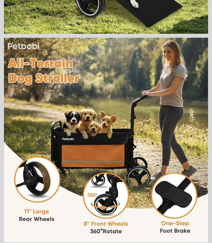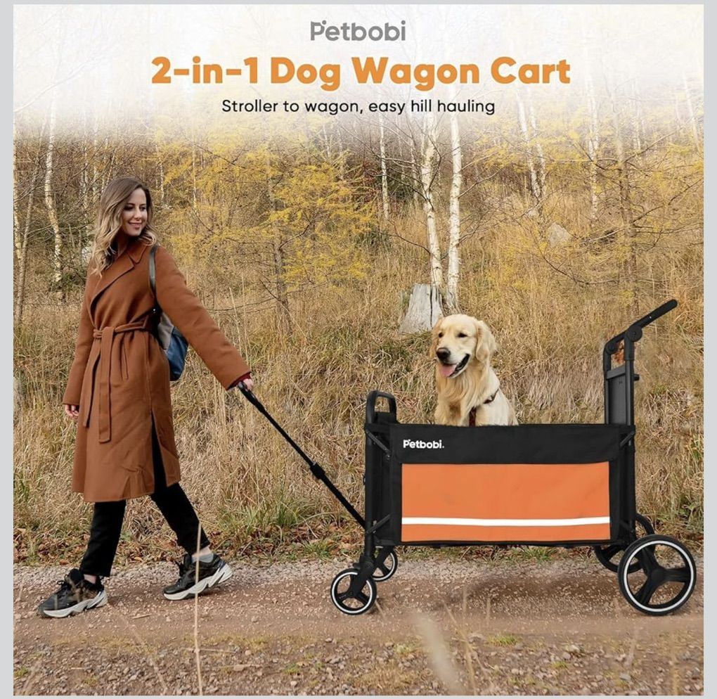 Dog Wagon Stroller for Large & Medium Dogs - 2-in-1 Push-Pull Pet Stroller with Ramp. All-terrain wagon and pet stroller.