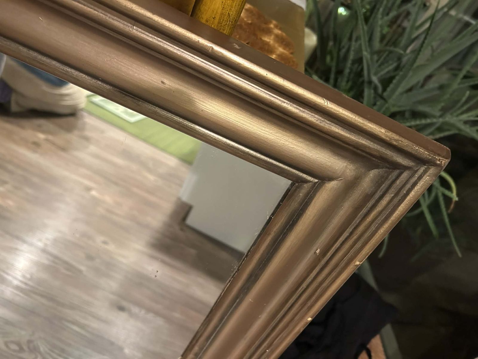 PayPalLarge framed wall mirror in a warm bronze / gold finish