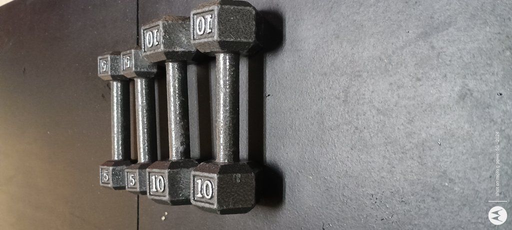 Cast iron dumbbells set. Has two 5 pound dumbbells and two 10 pound dumbbells. Great for home workouts. Pickup in Ogden either at the North end of town by 5 points or South end of town by wsu.