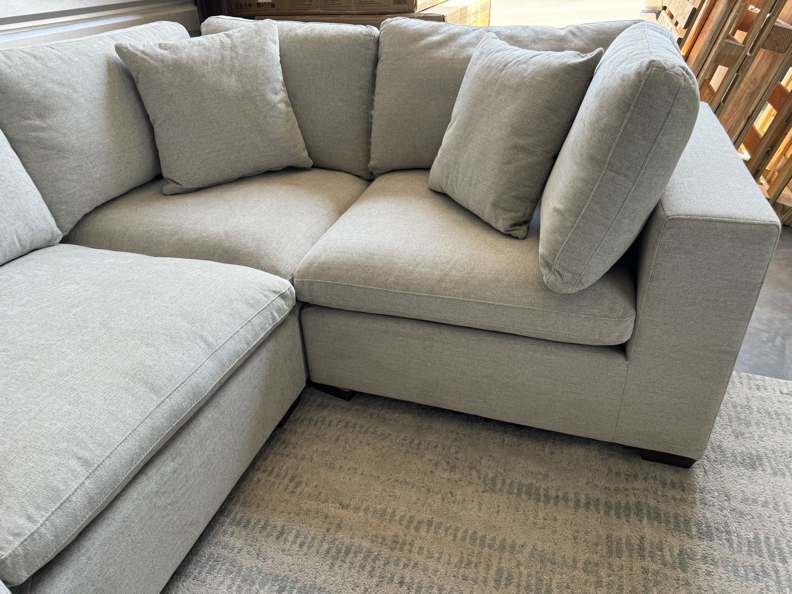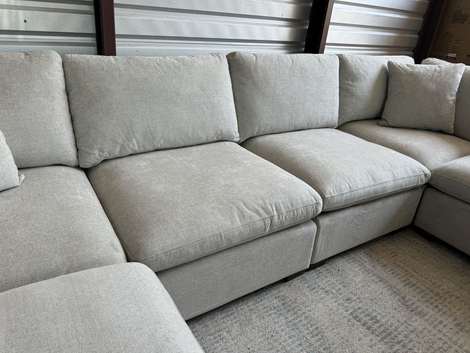 Features: Color: Gray Pieces Can Be Arranged in Multiple Configurations Sectional Cushions are Loose and Reversible Ottoman Included