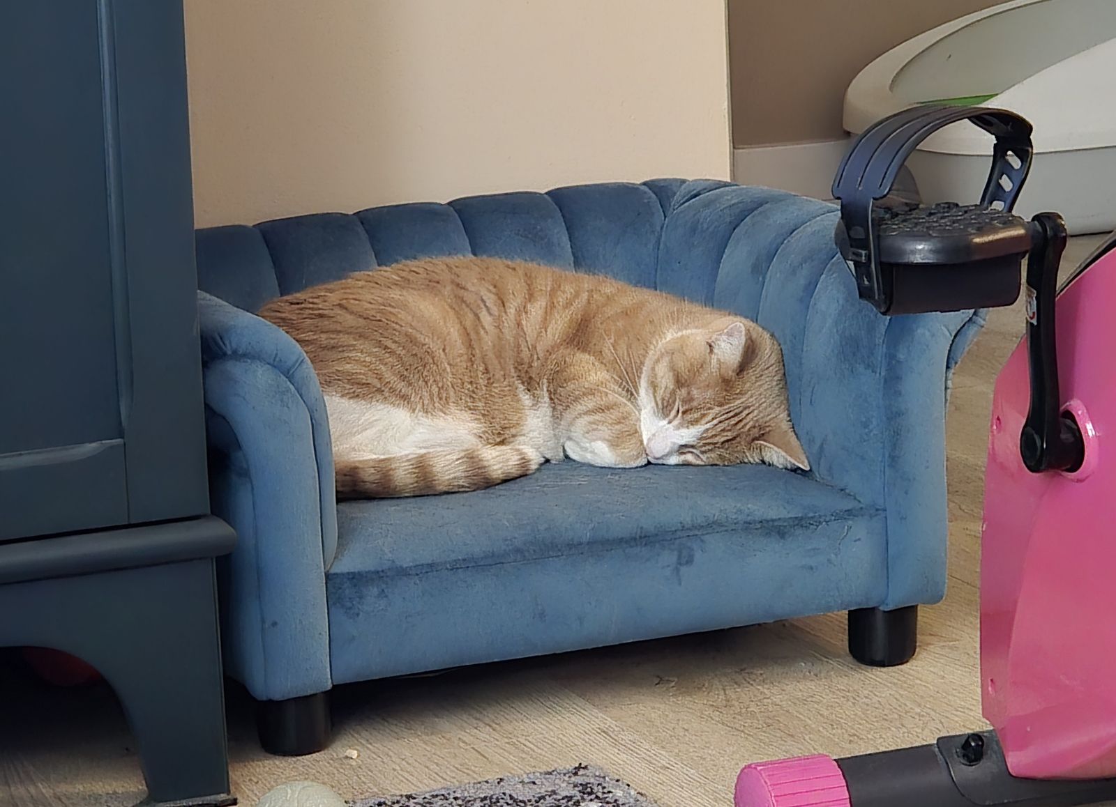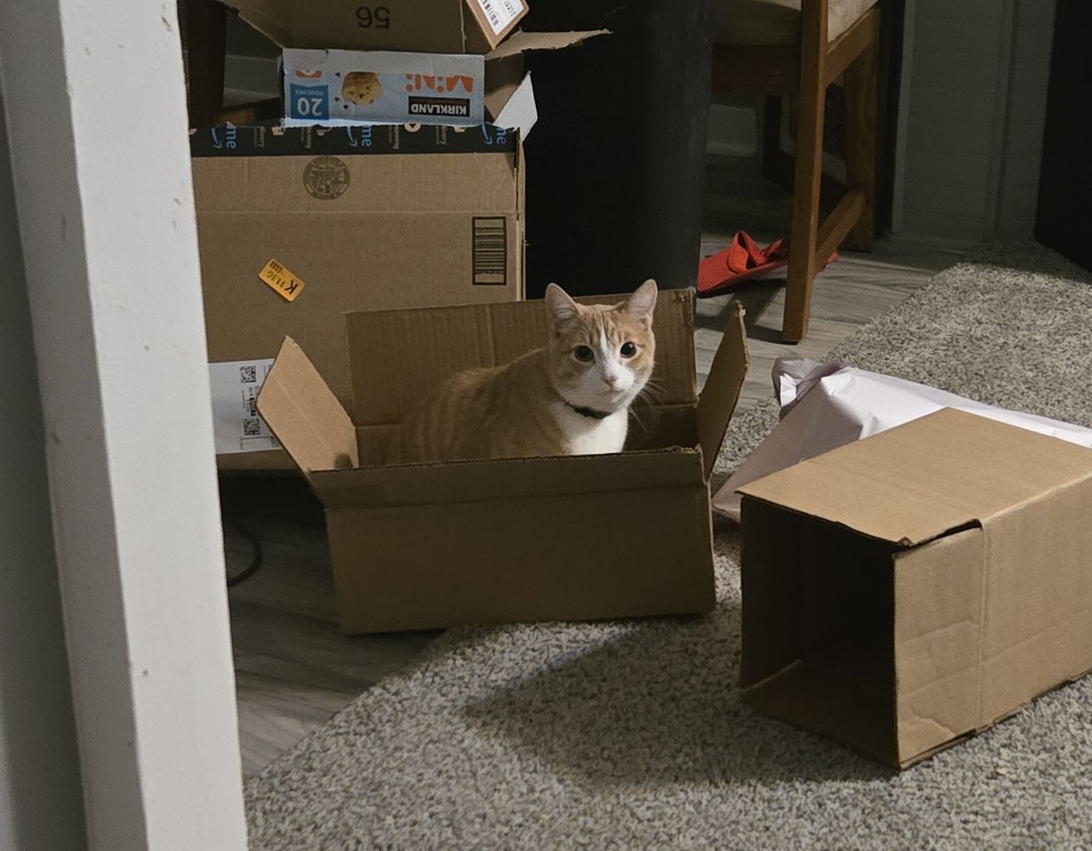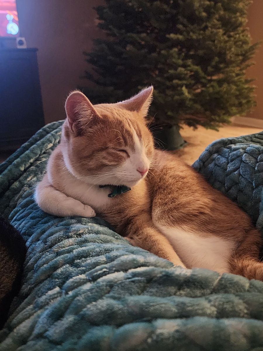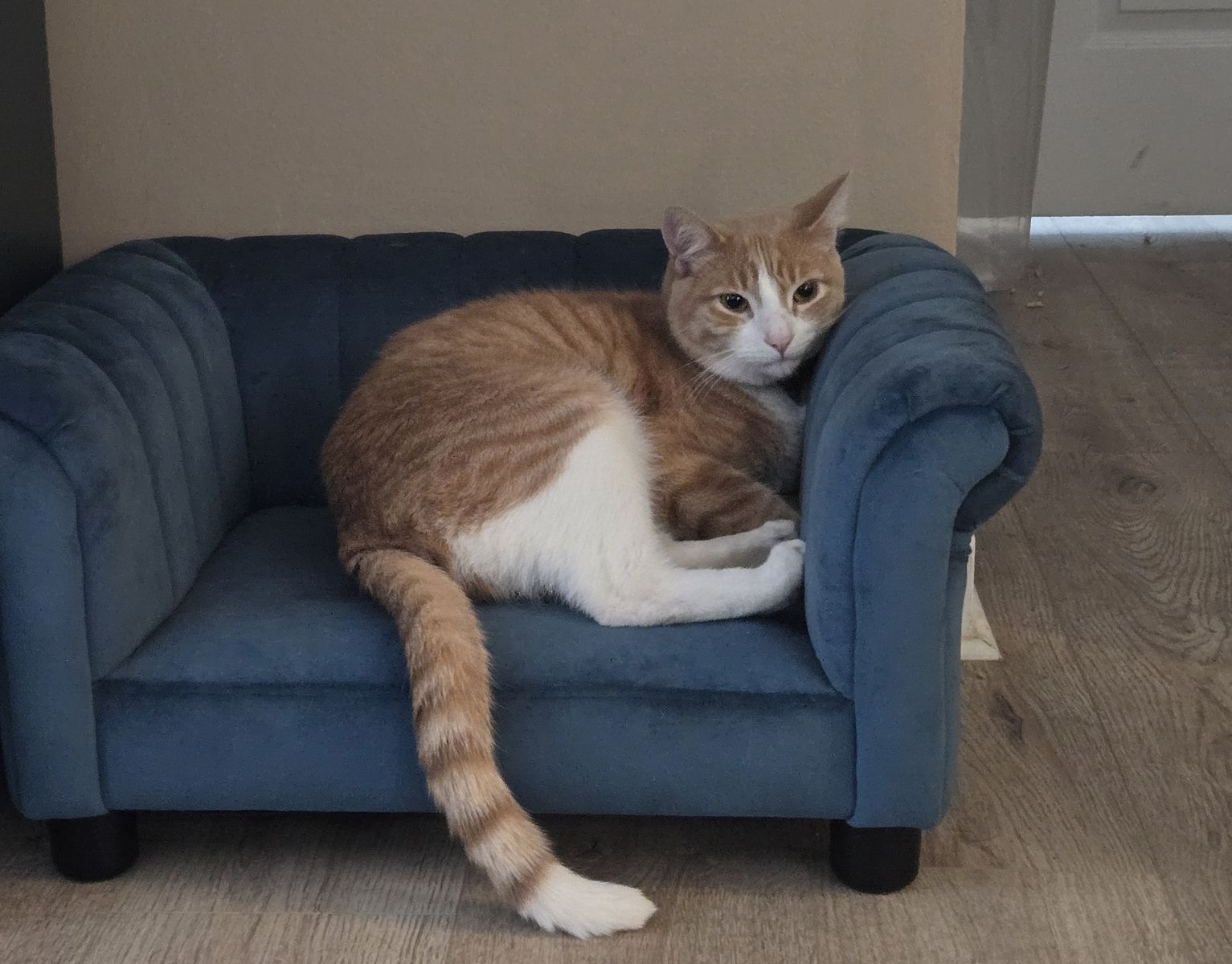 Ravioli is a sensitive, observant little guy. He tends to be easily spooked in busy or chaotic environments, which is why we believe he would do best in a quieter home. He’s not really a 'lap cat,' but he does enjoy affection on his terms—he’ll come sit near you on the couch and accept attention and love when he’s comfortable. Ravioli does not have much interest in going outdoors and would be perfectly happy as an indoor cat.