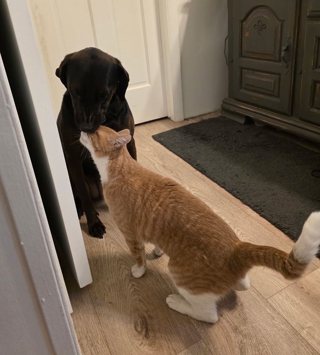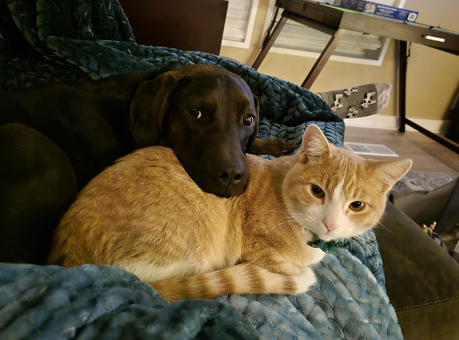 Despite sometimes being nervous of people, Ravioli is wonderfully tolerant and gentle. He gets along especially well with our other cat and our dog. He may hide when guests are over, but otherwise spends time out and about once he feels safe.