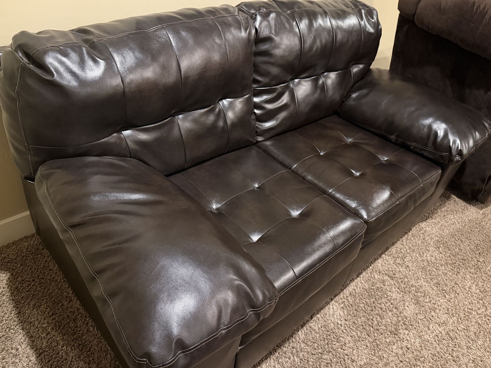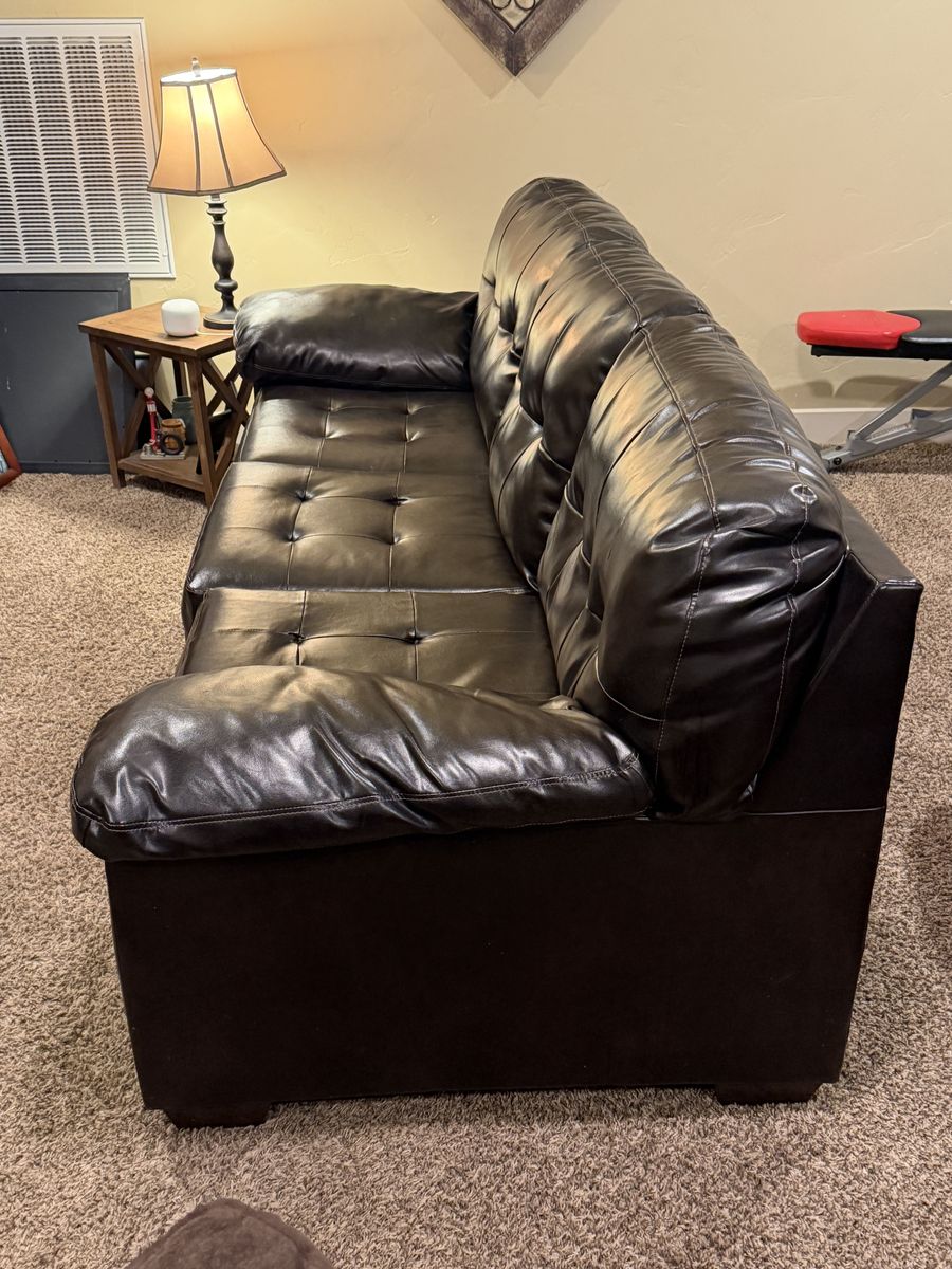 Style: Deep brown with tufted cushions and very plush, comfortable armrests. (Note: These are stationary couches; they do not recline or have pull-out beds).